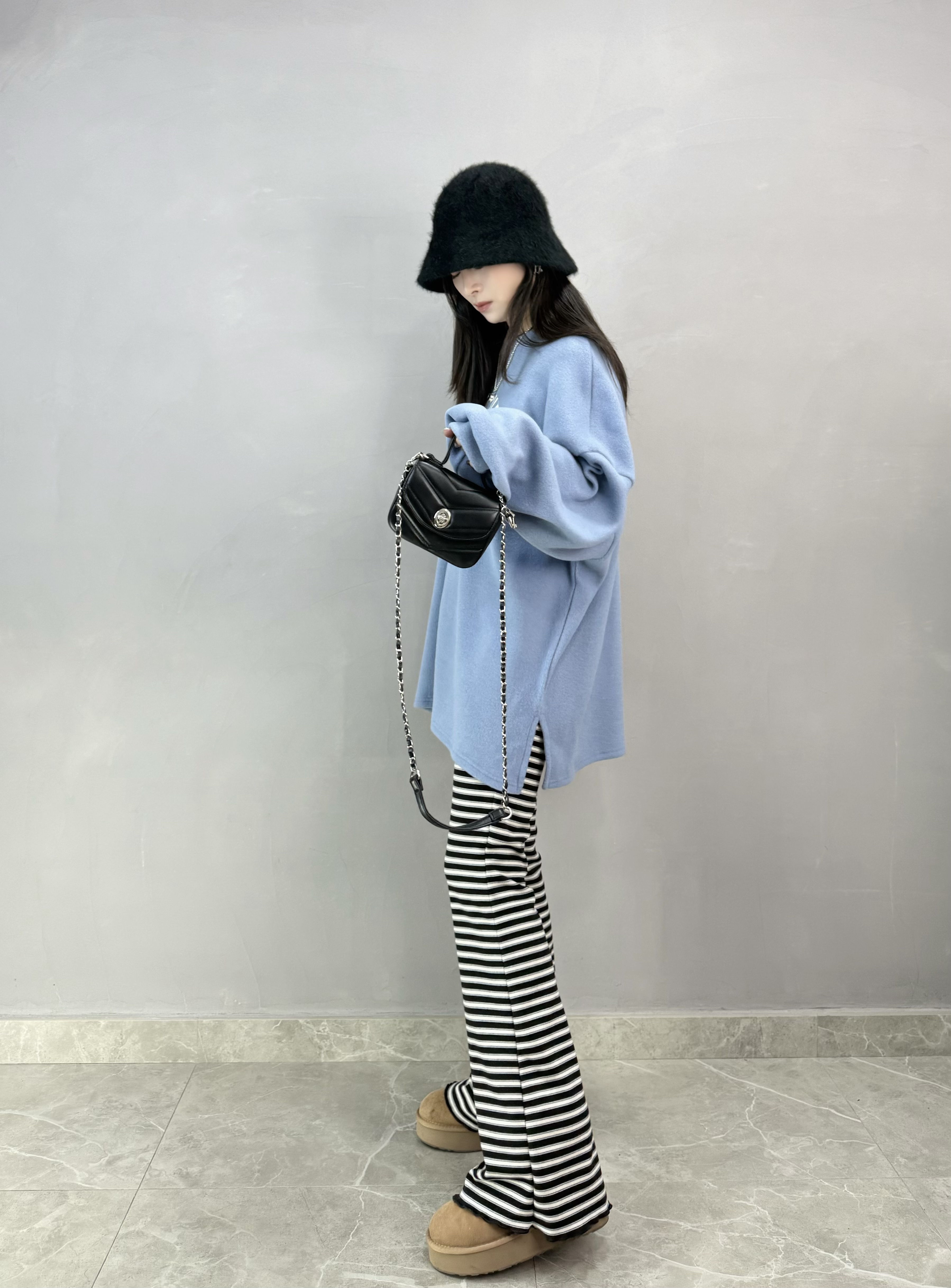 A62 磨毛橫間喇叭褲