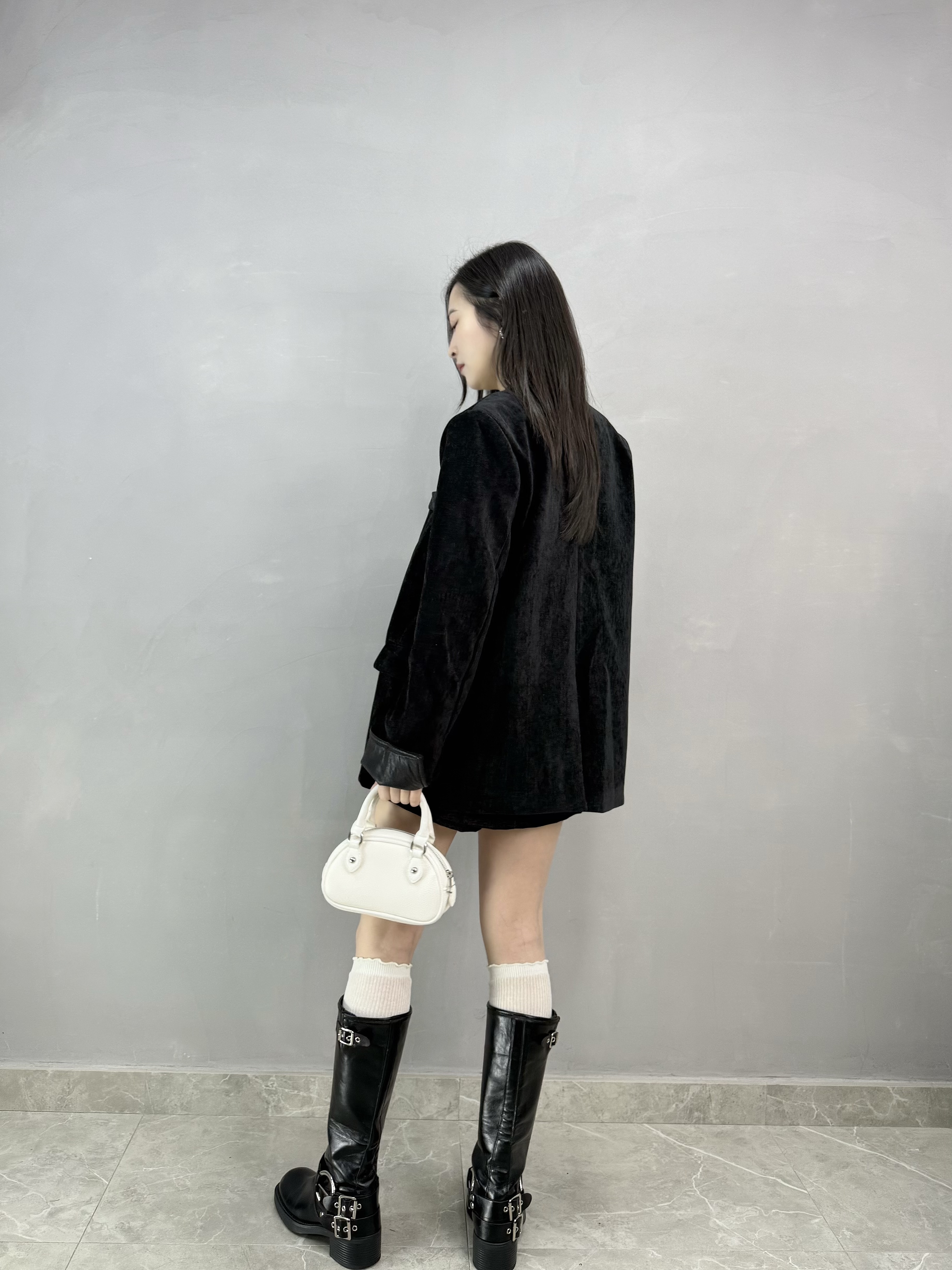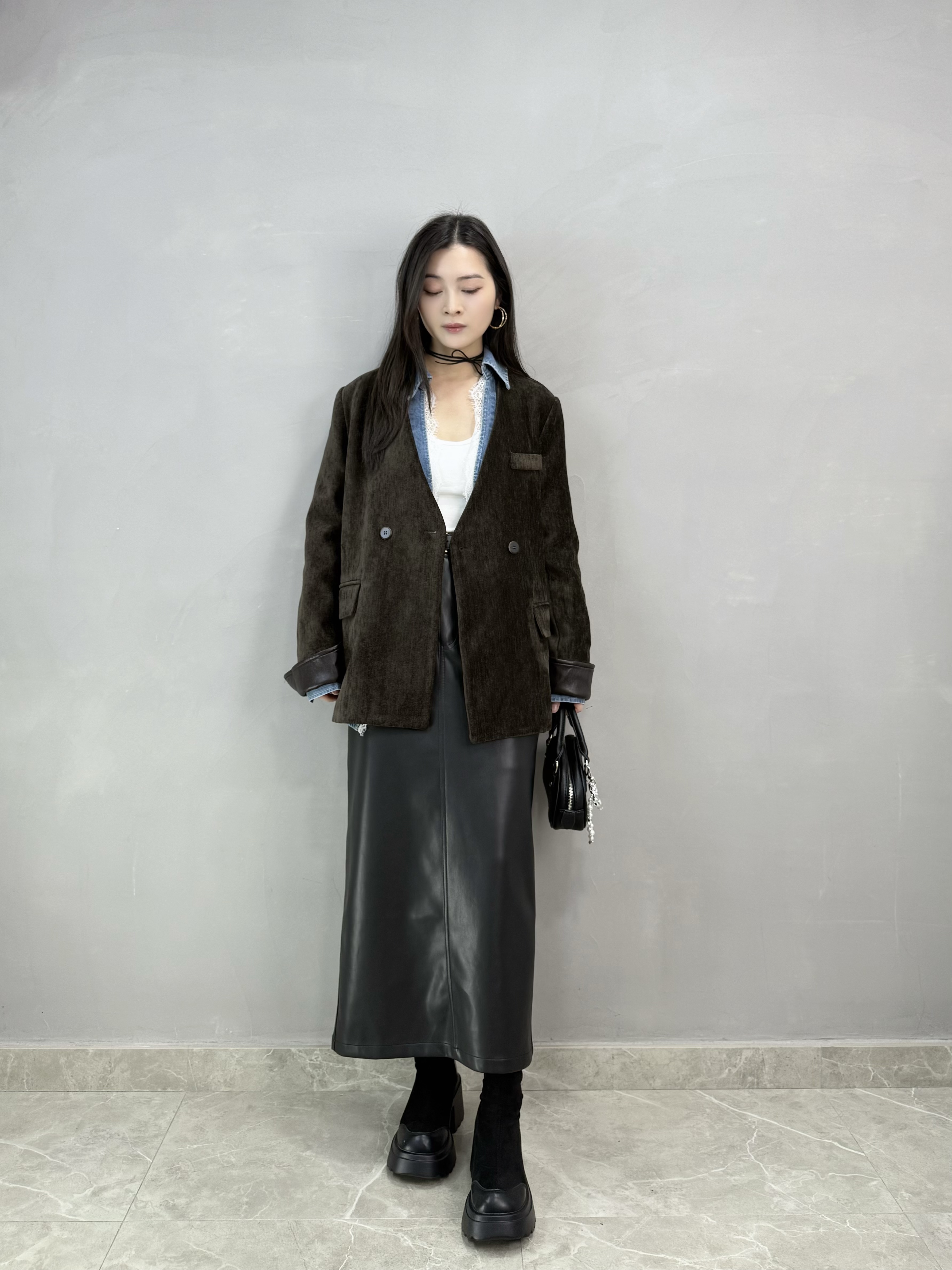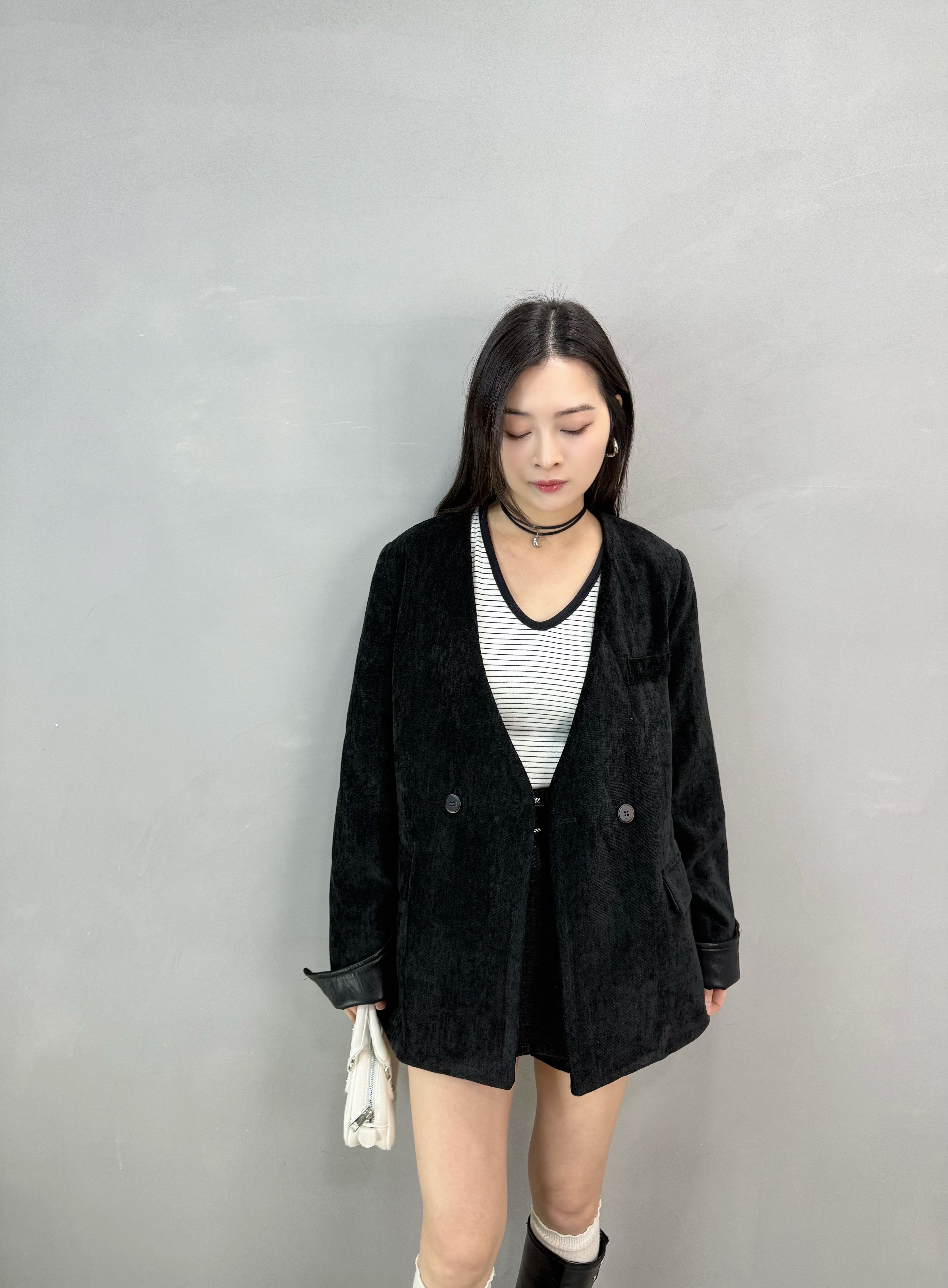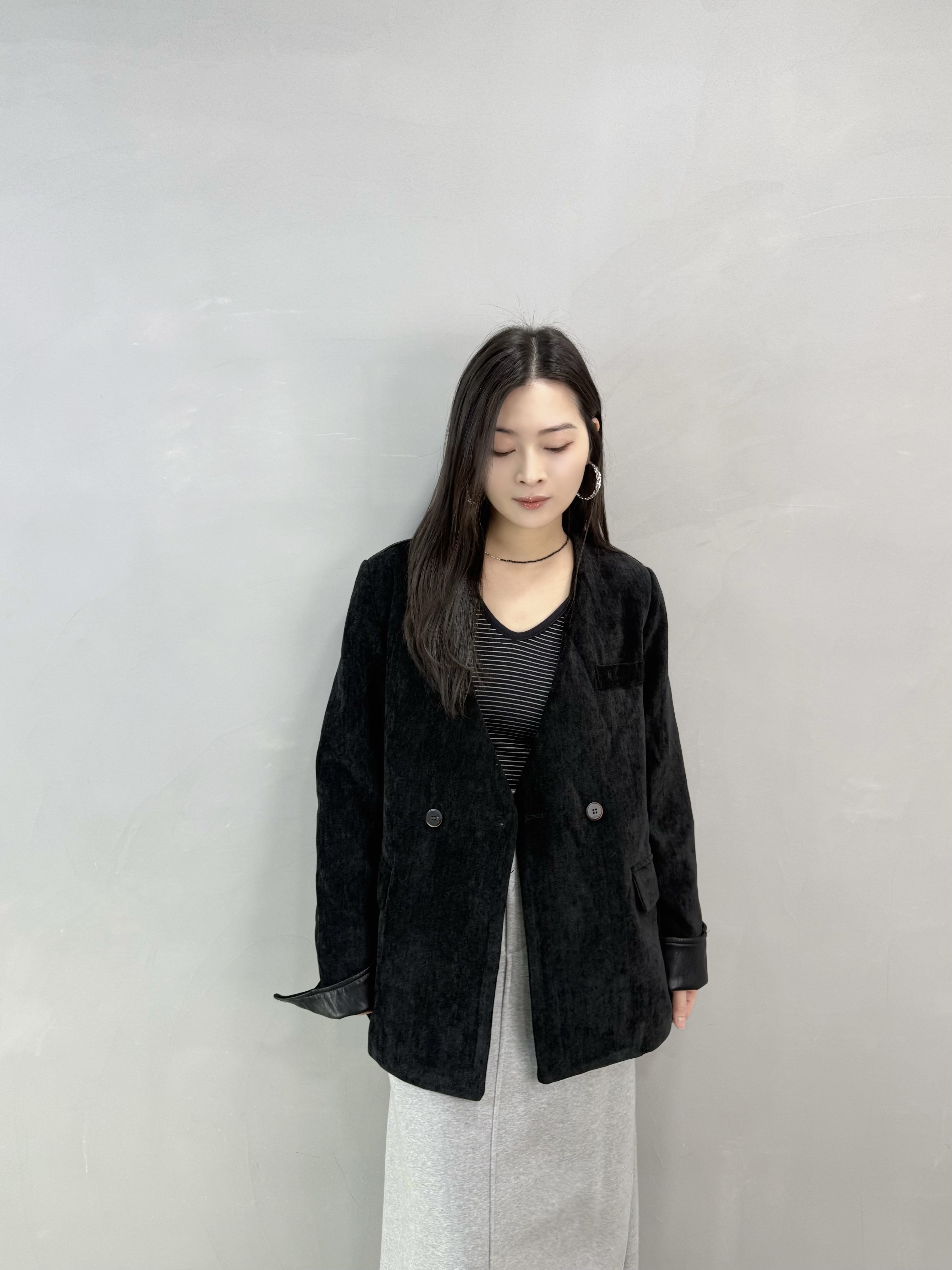 C62 絲絨皮袖西裝褸