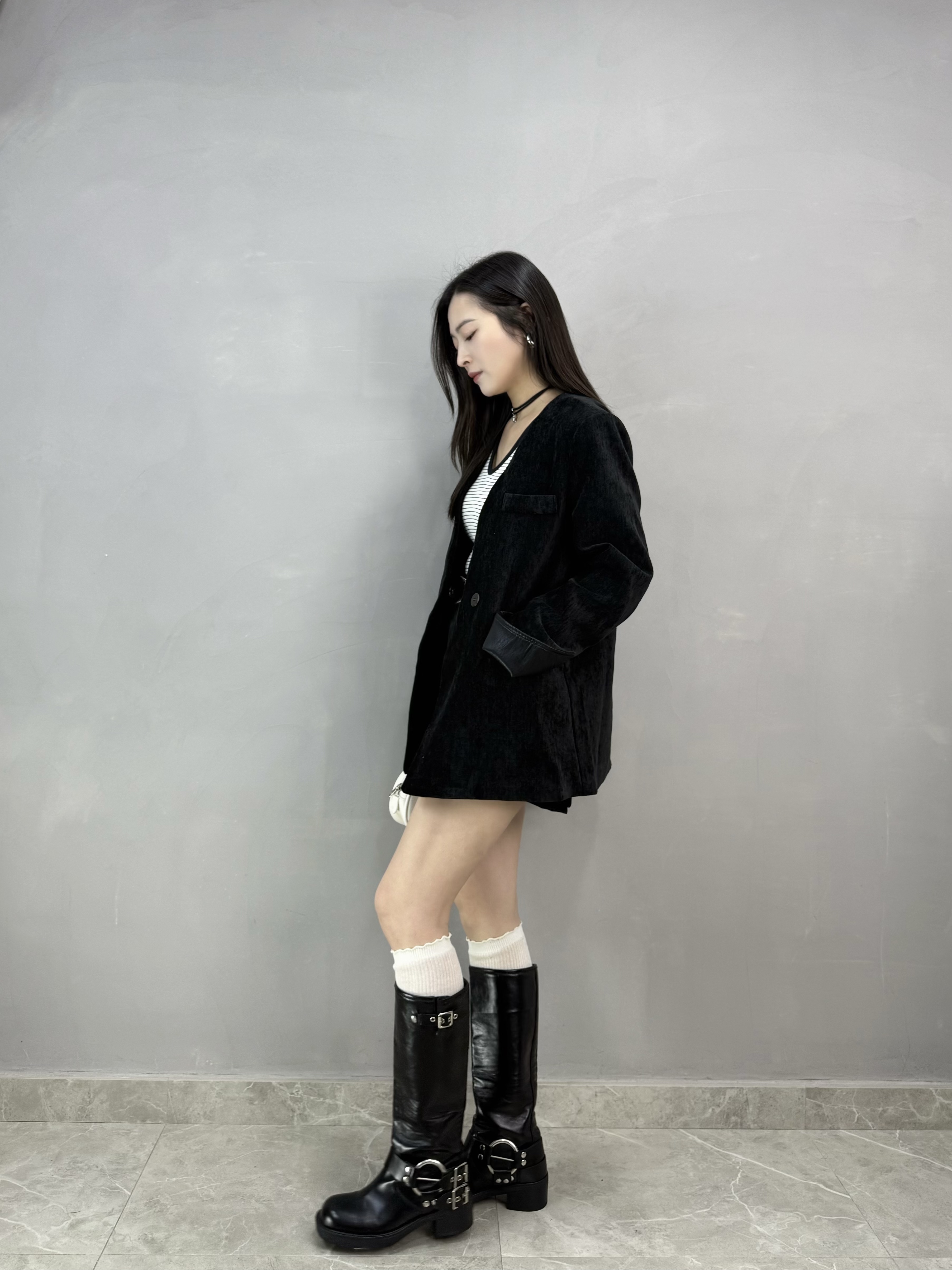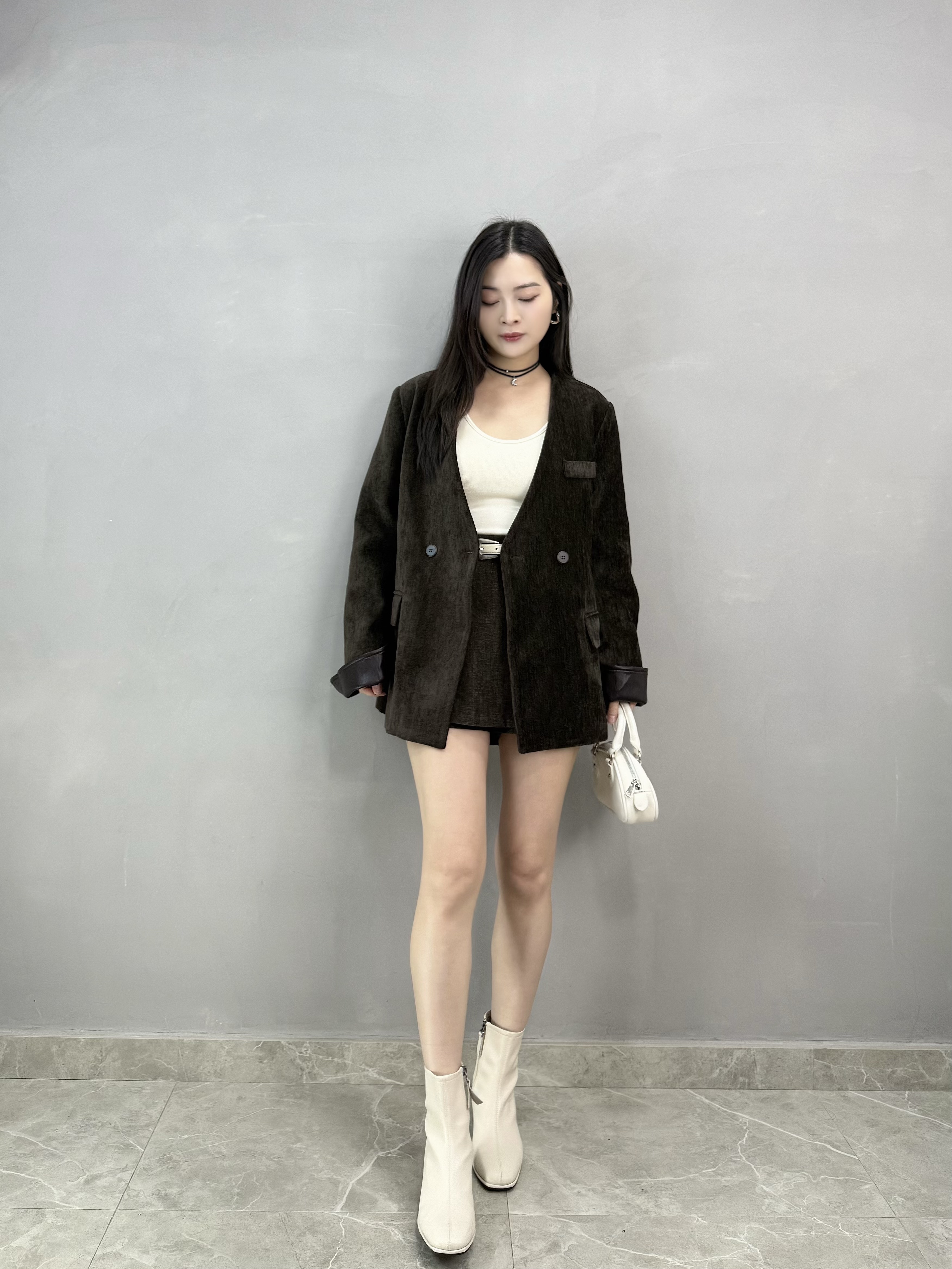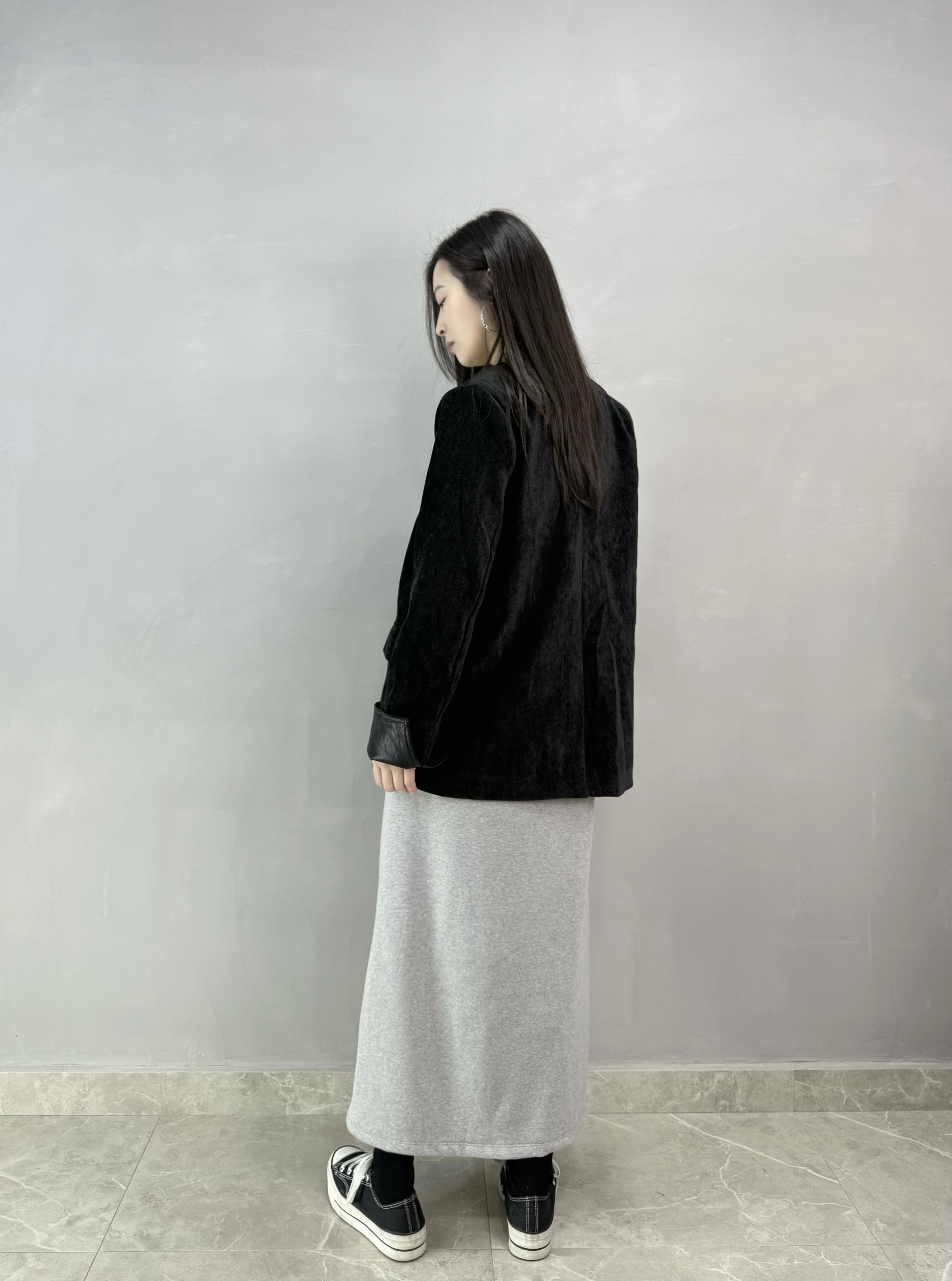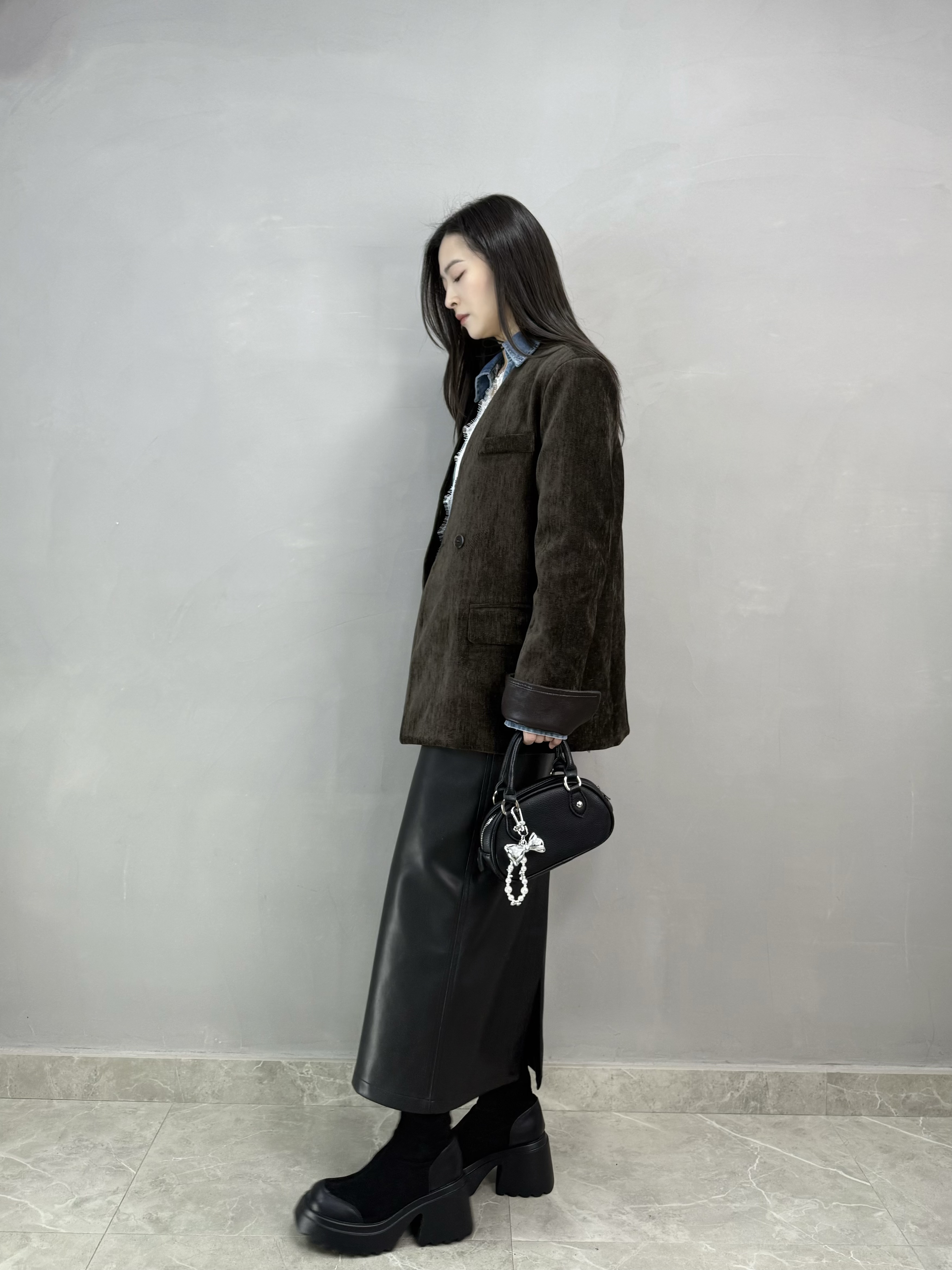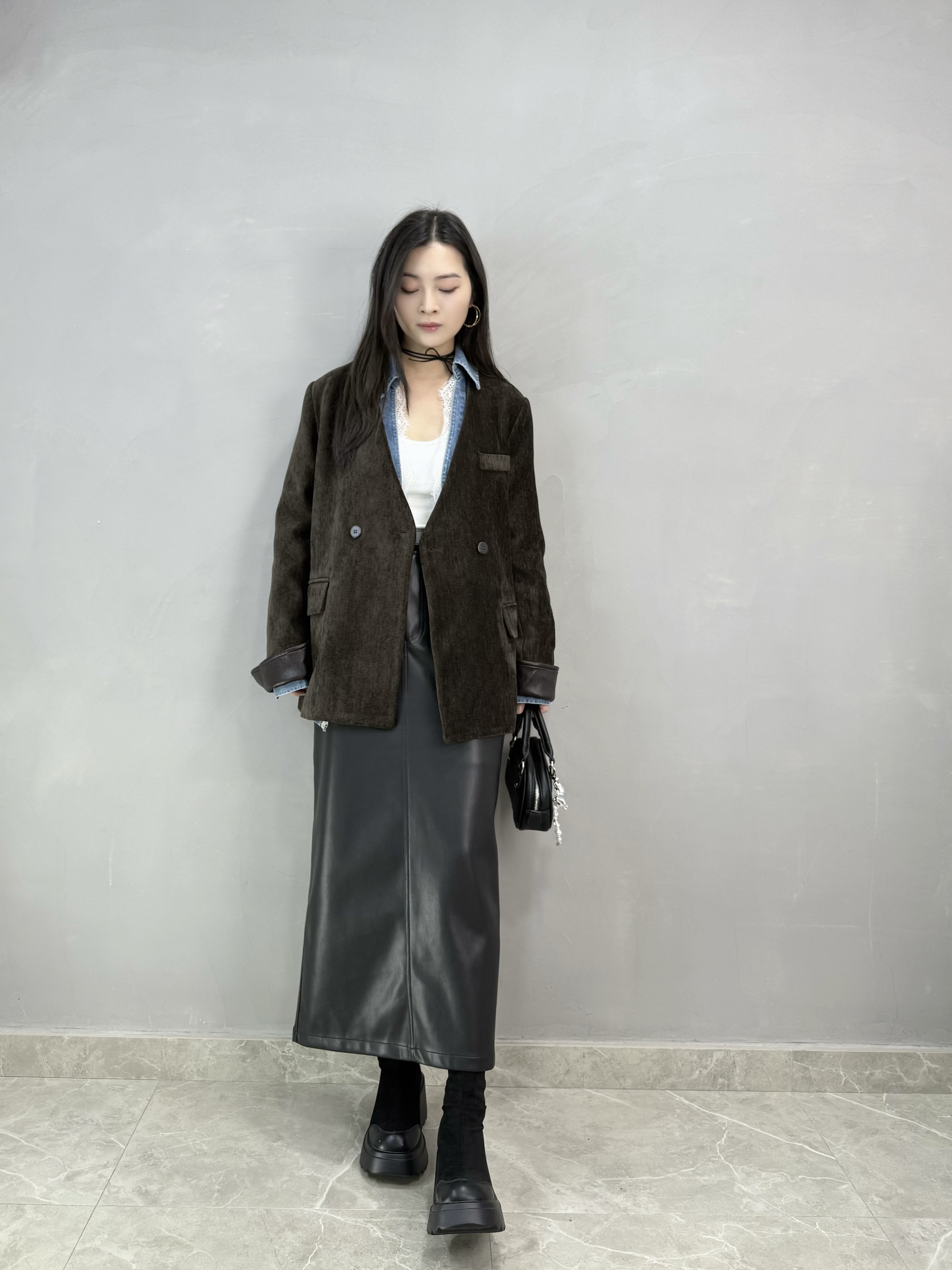 C62 絲絨皮袖西裝褸