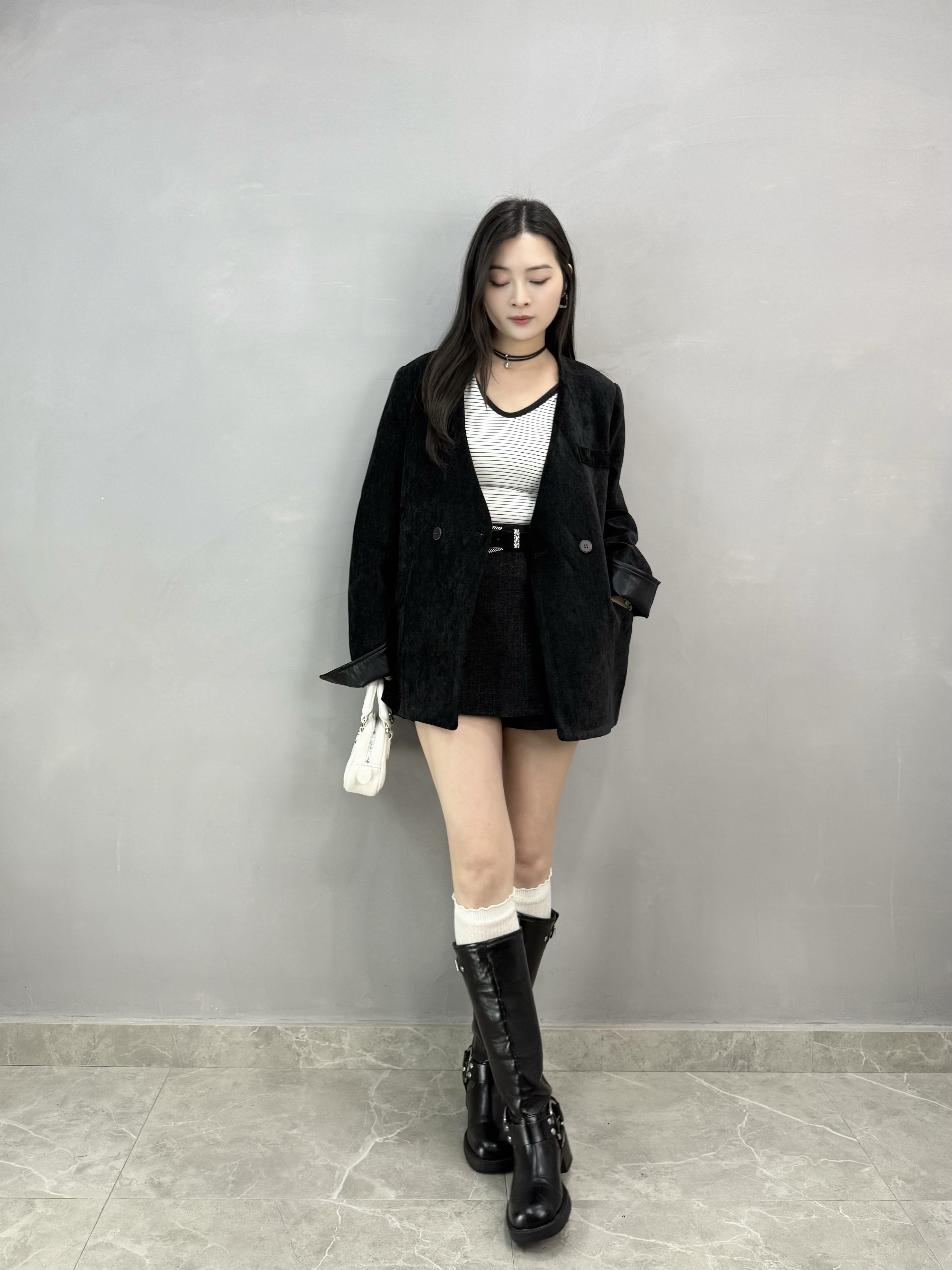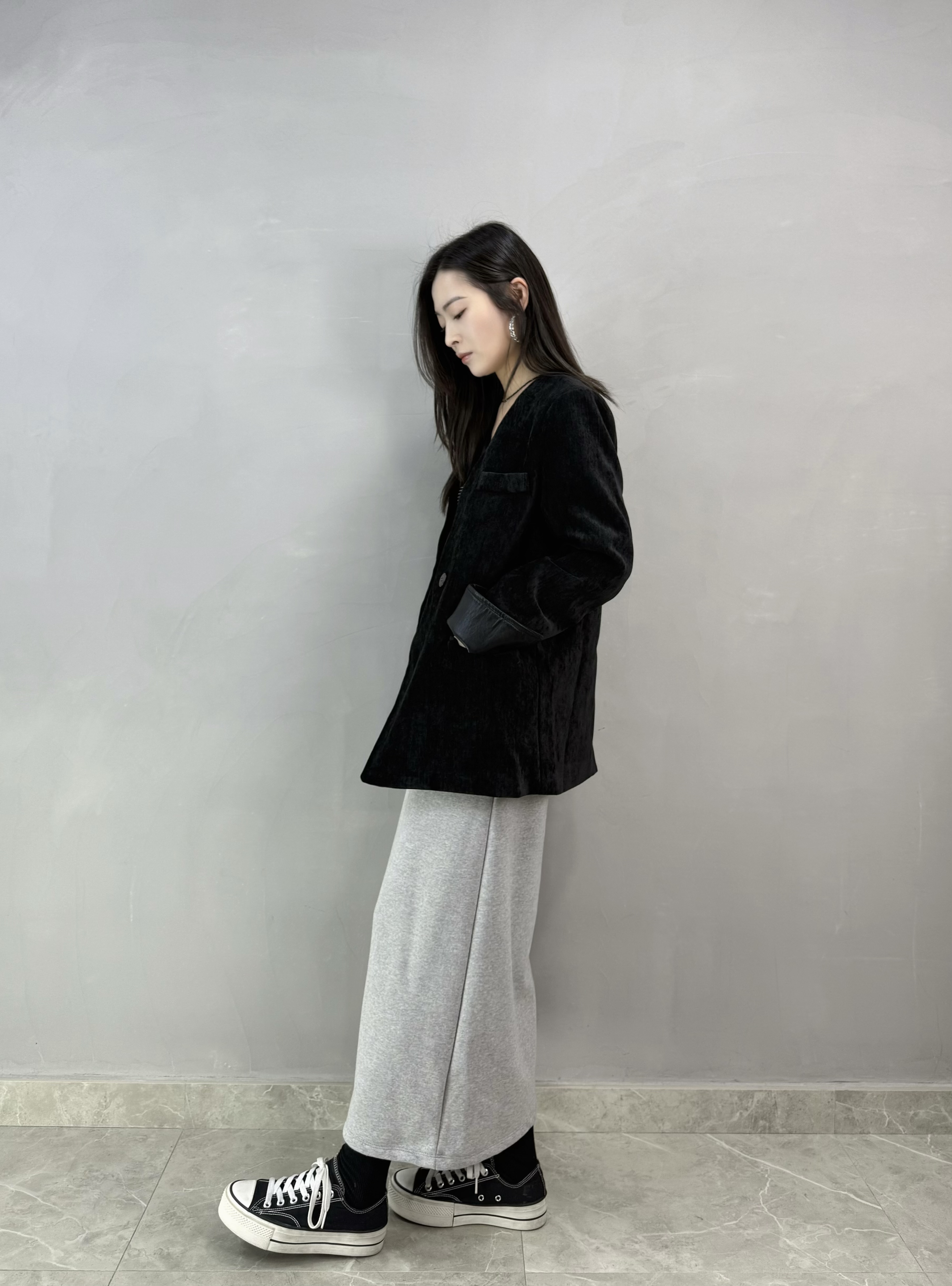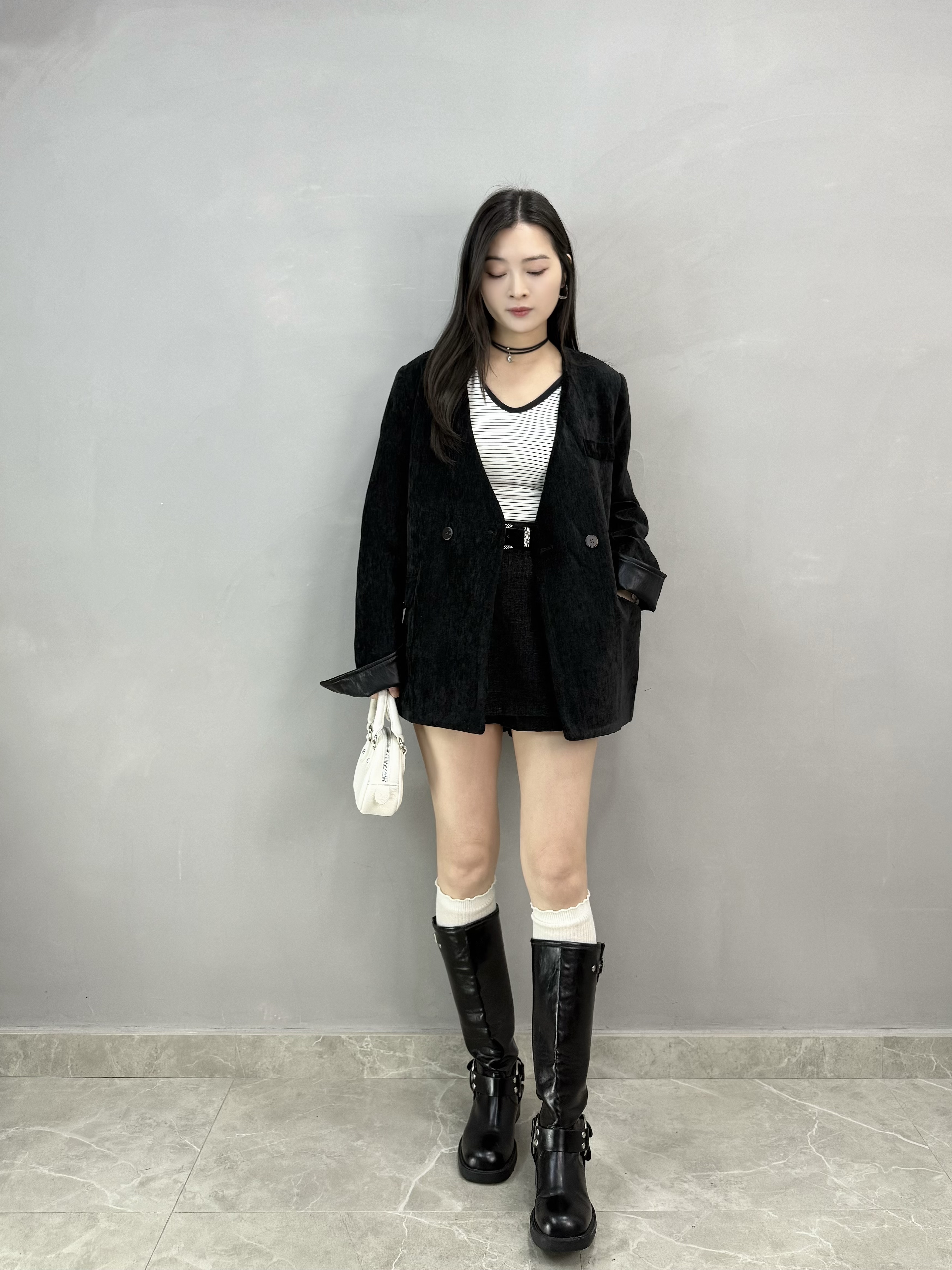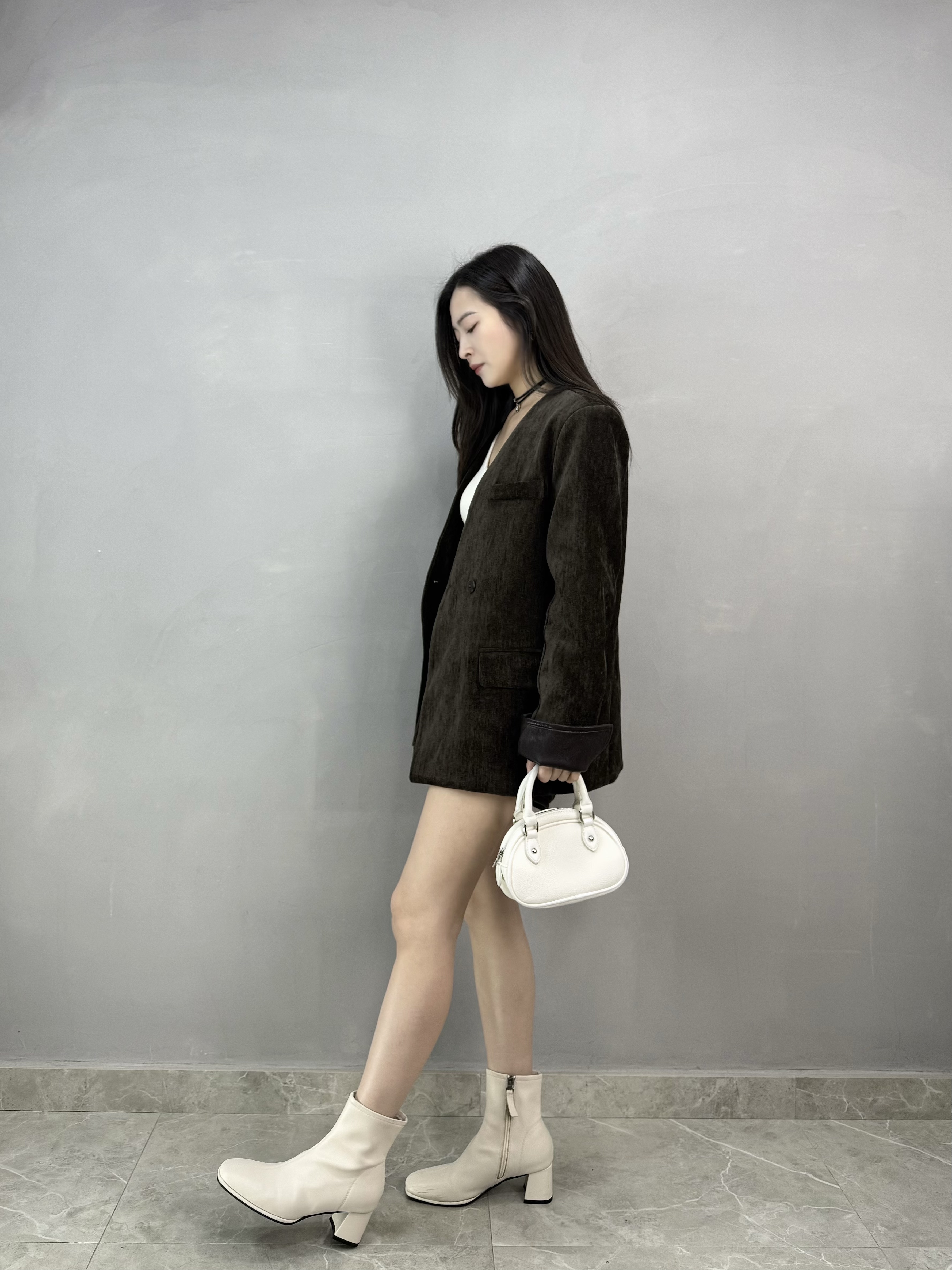 C62 絲絨皮袖西裝褸