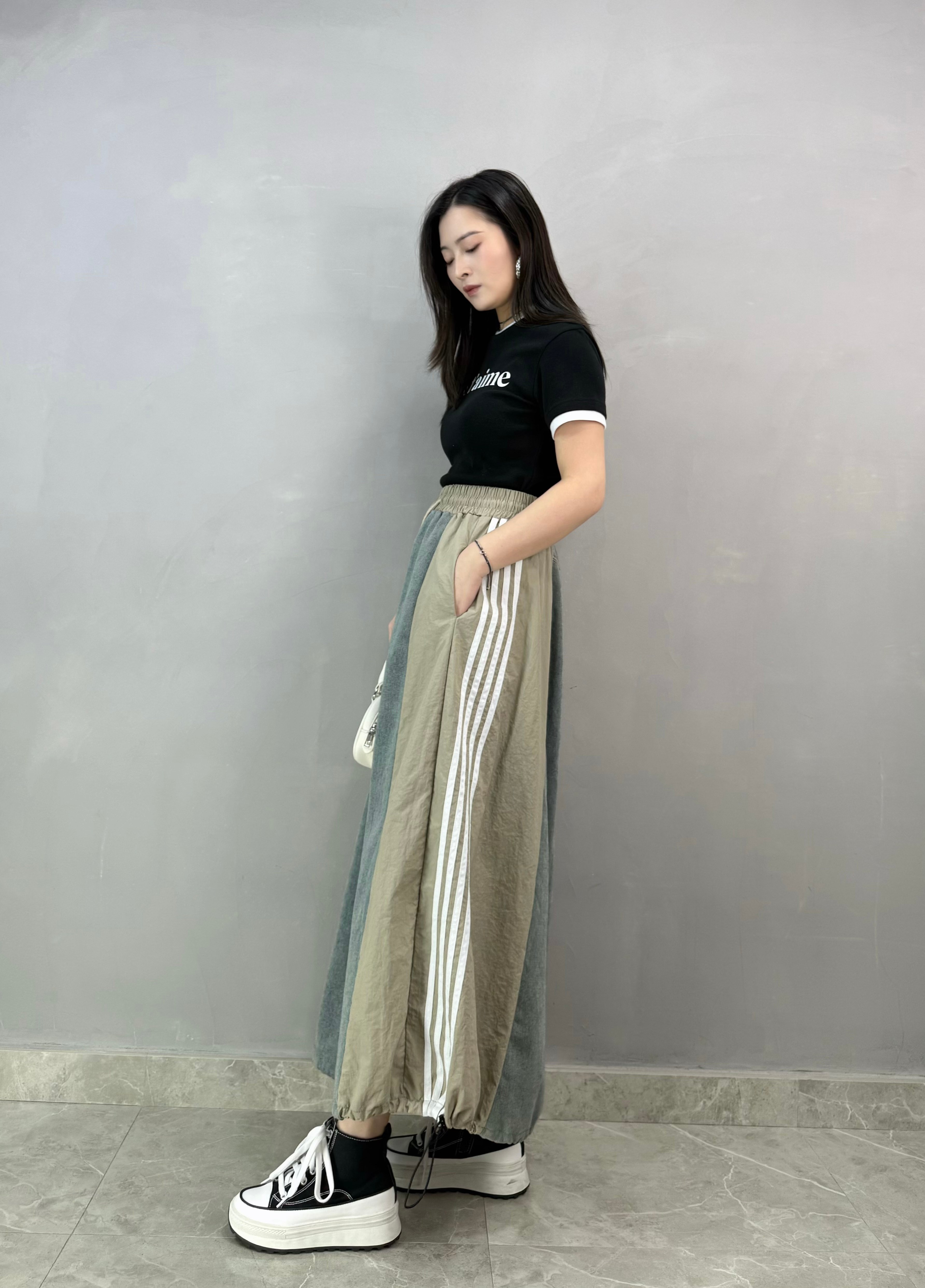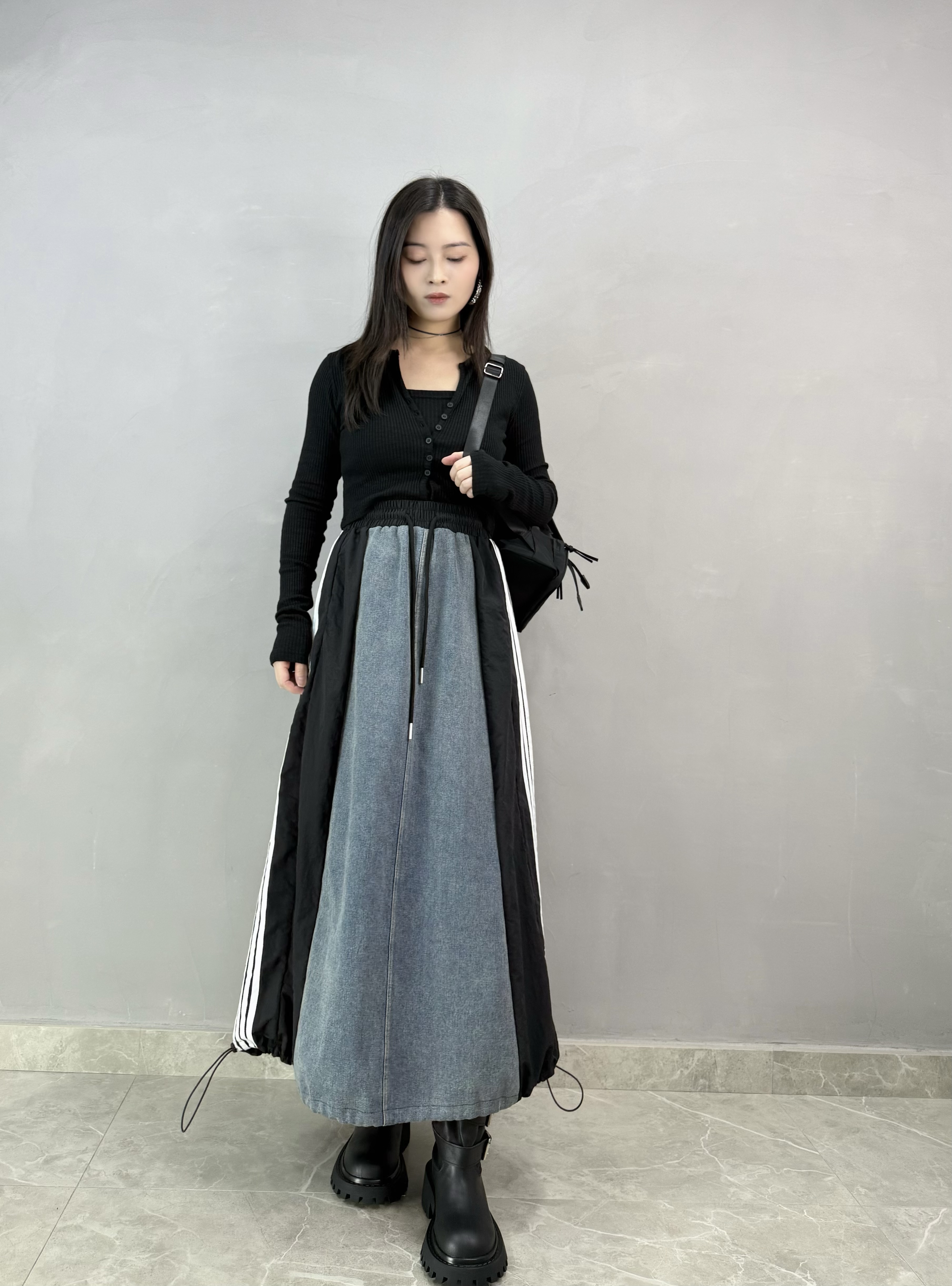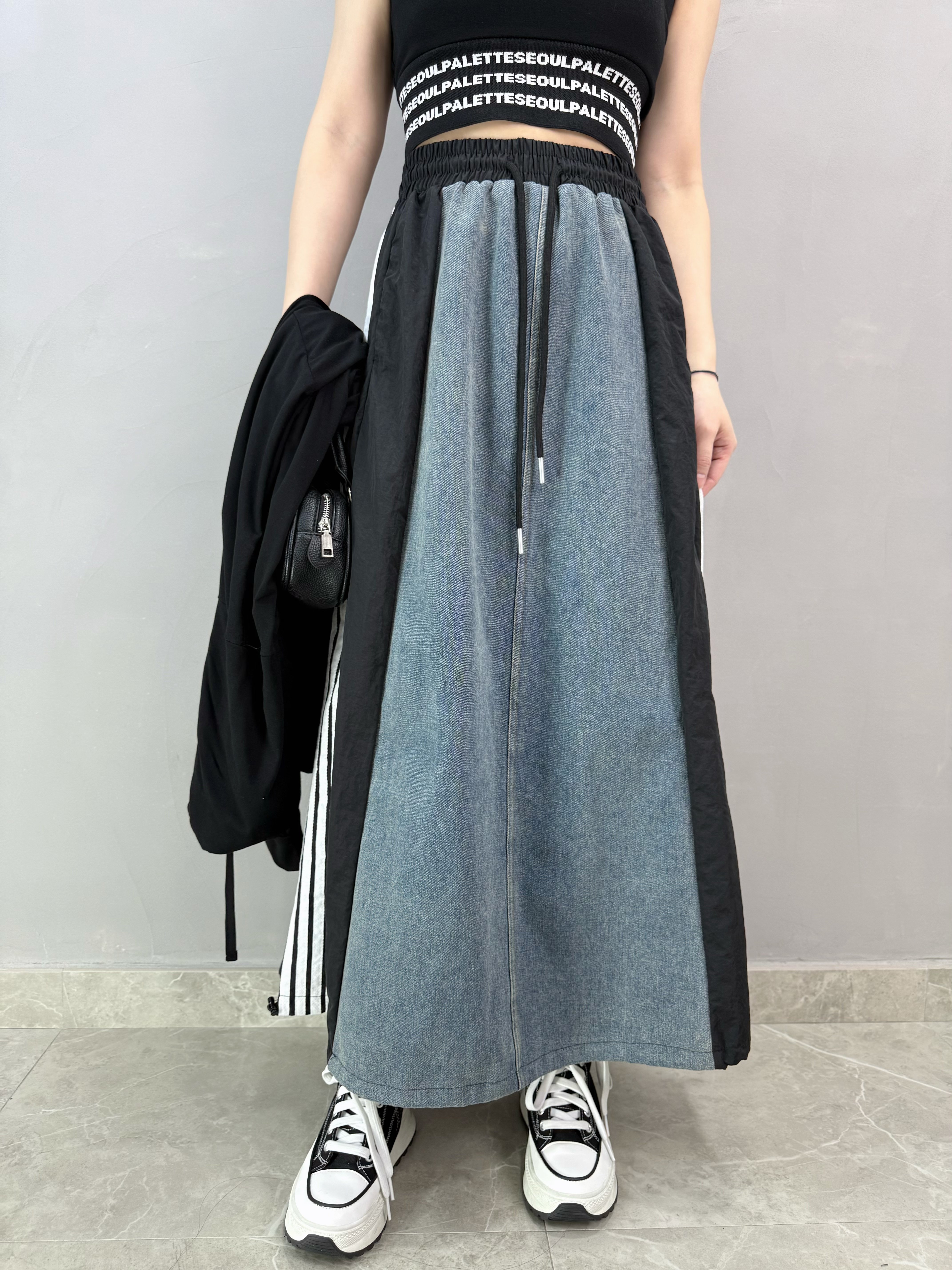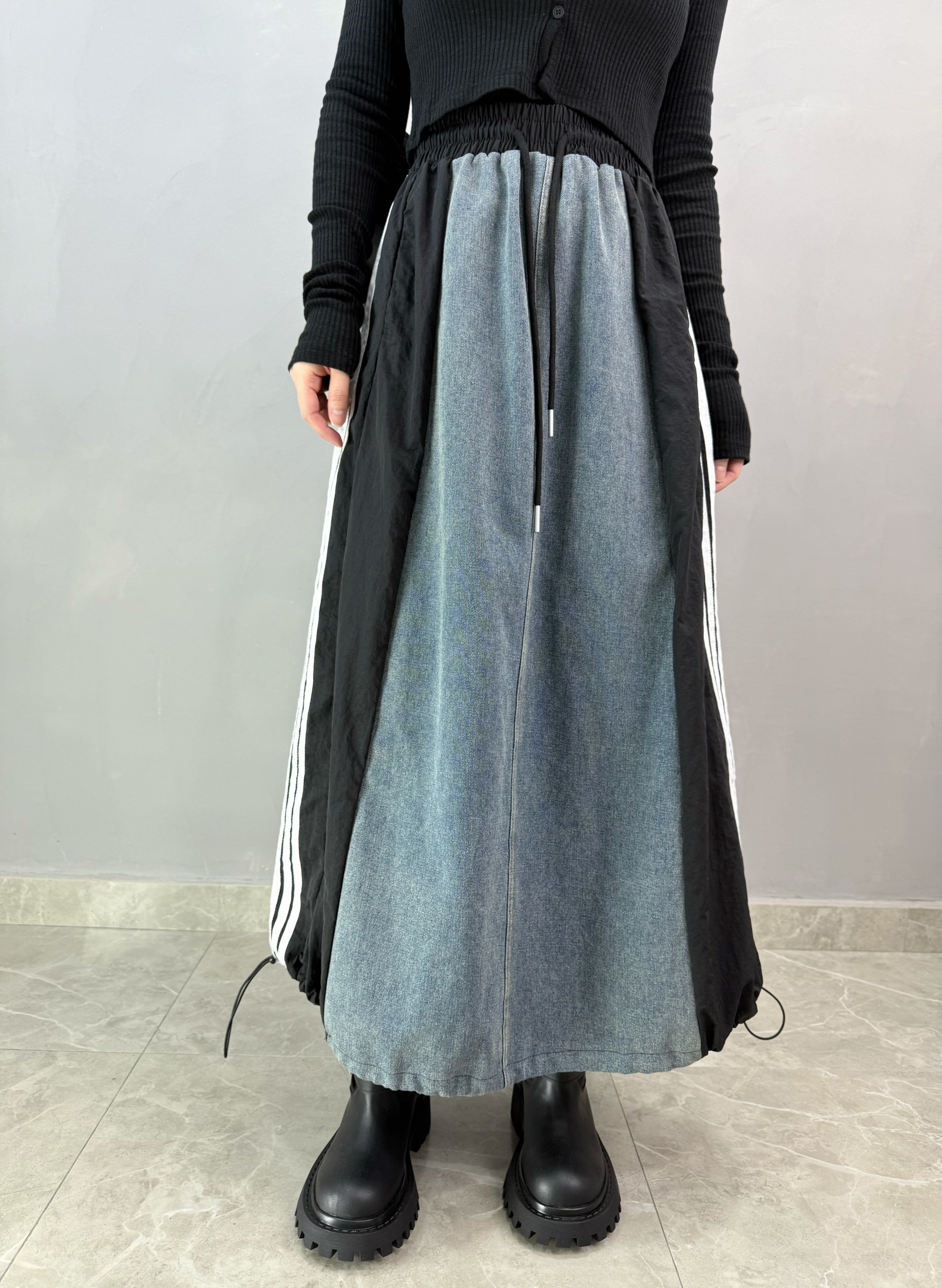 P42 牛仔拼風褸料裙