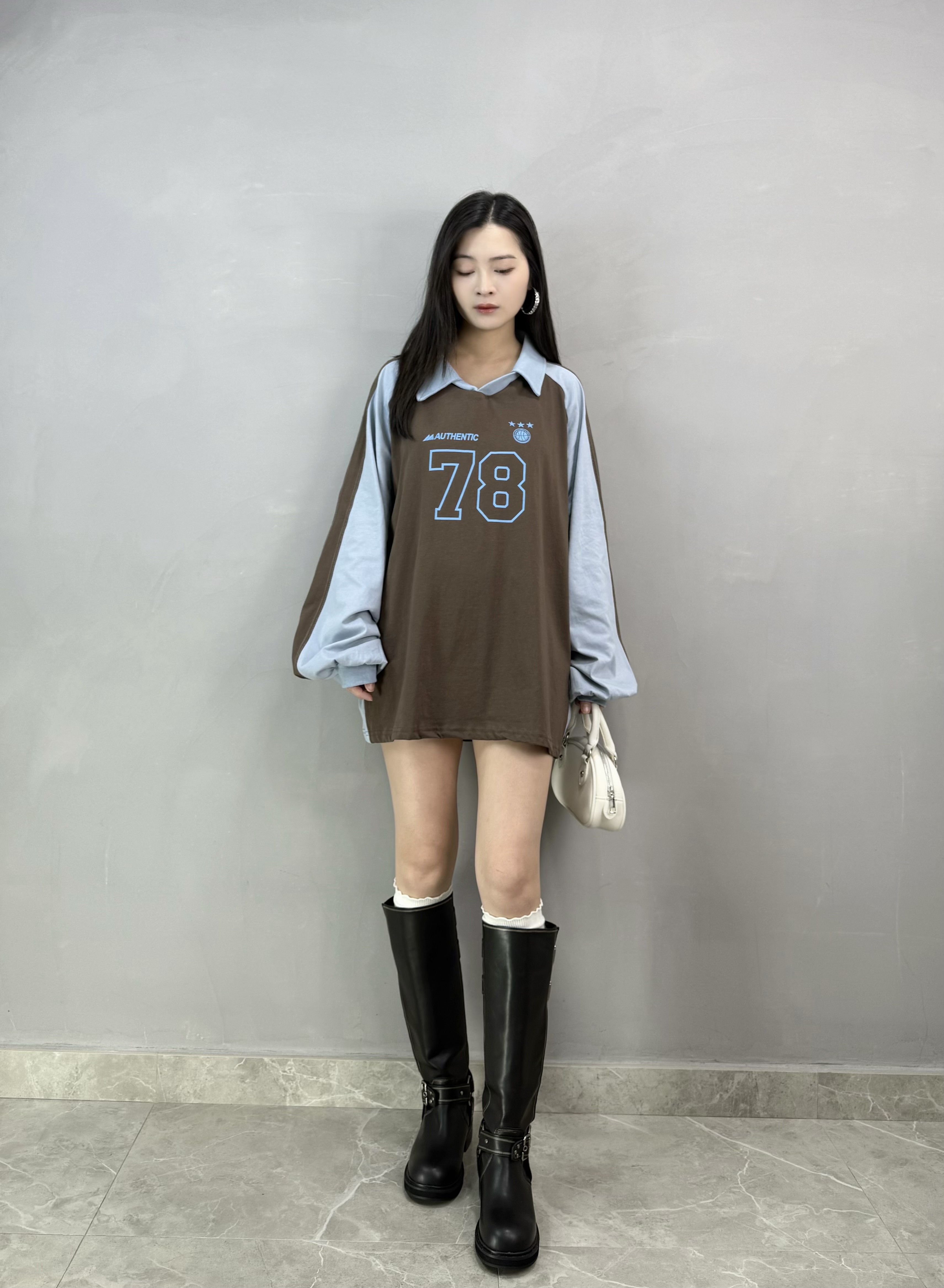 T47 拼色反領數字Tee