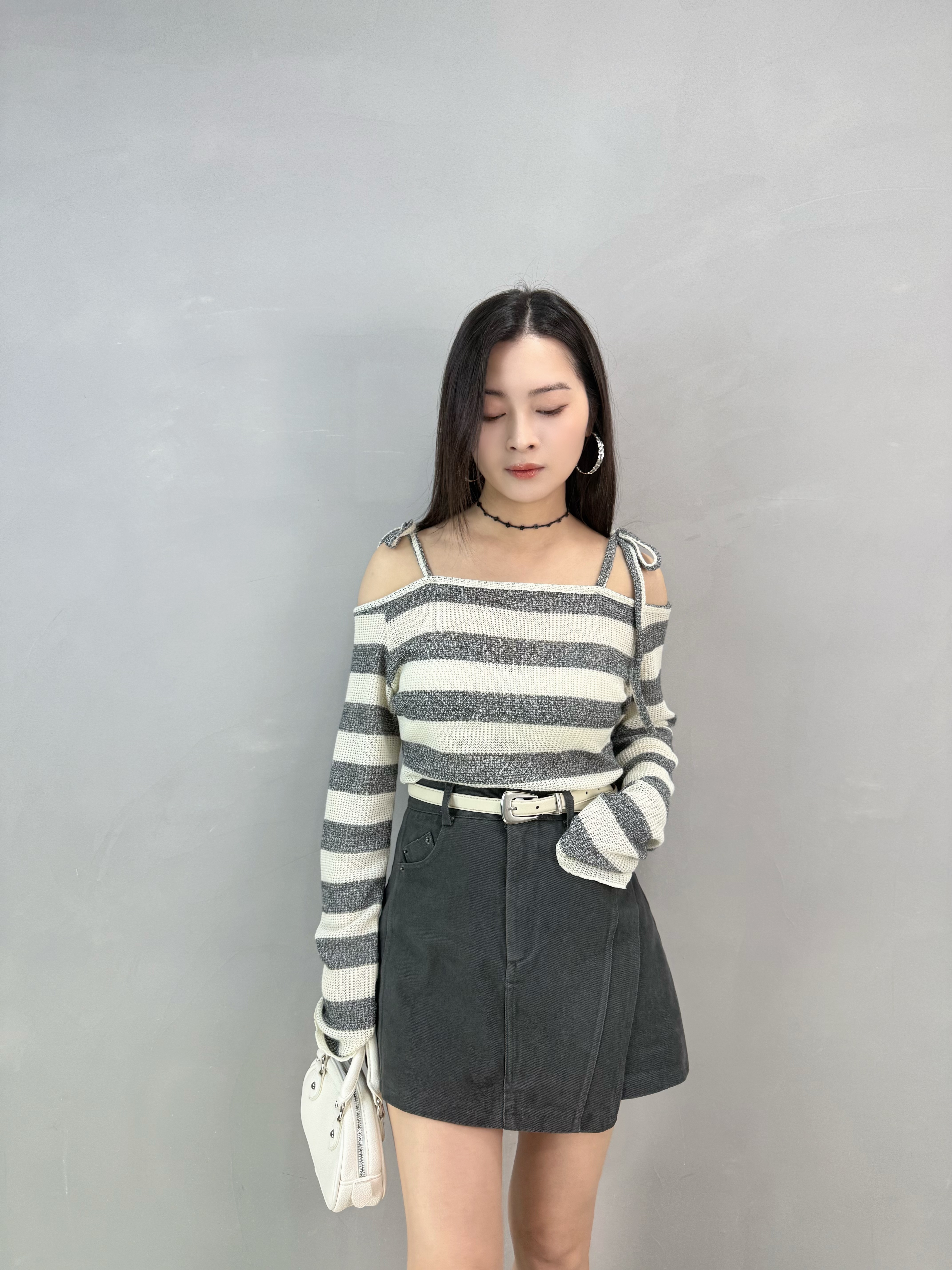 T43 綁帶橫間露膊Top