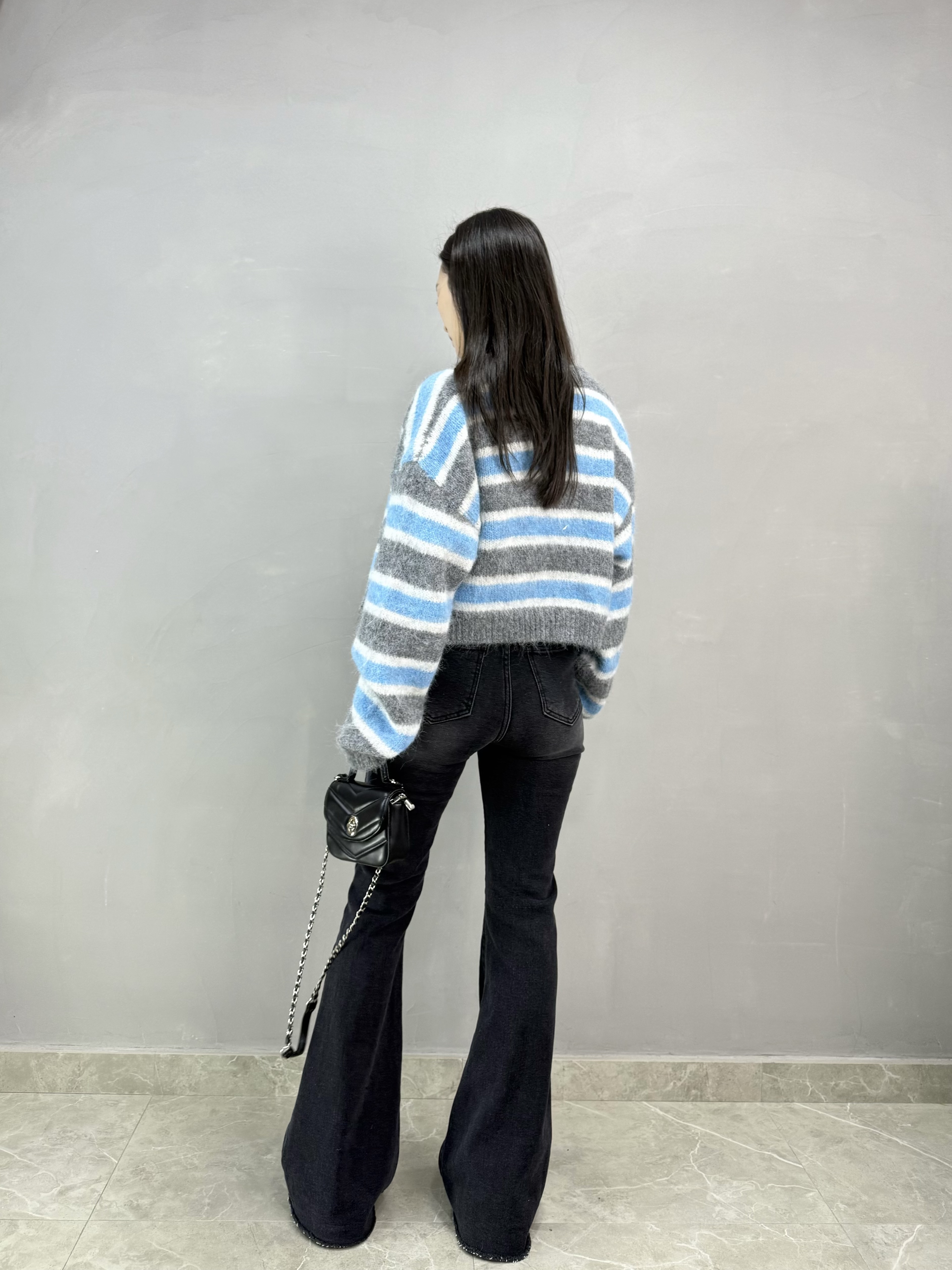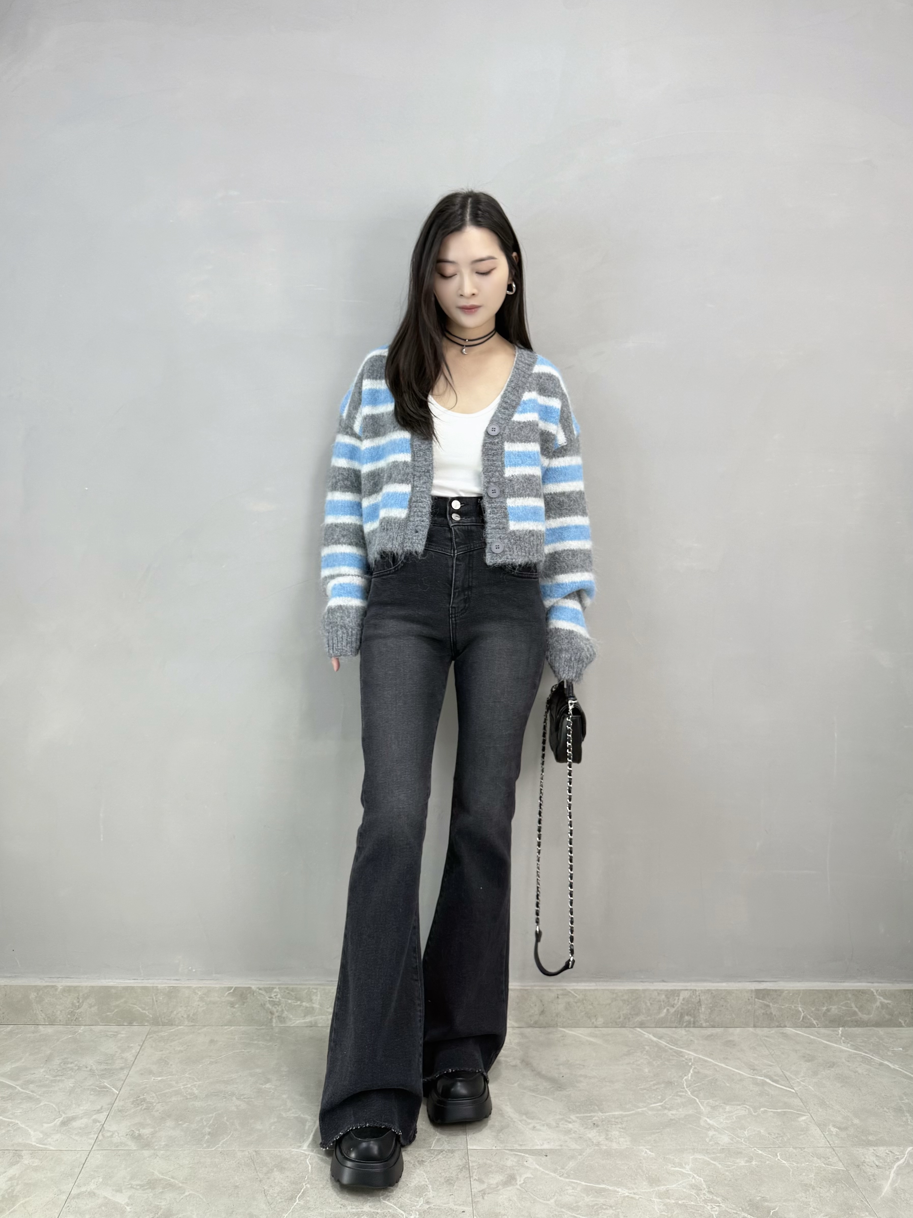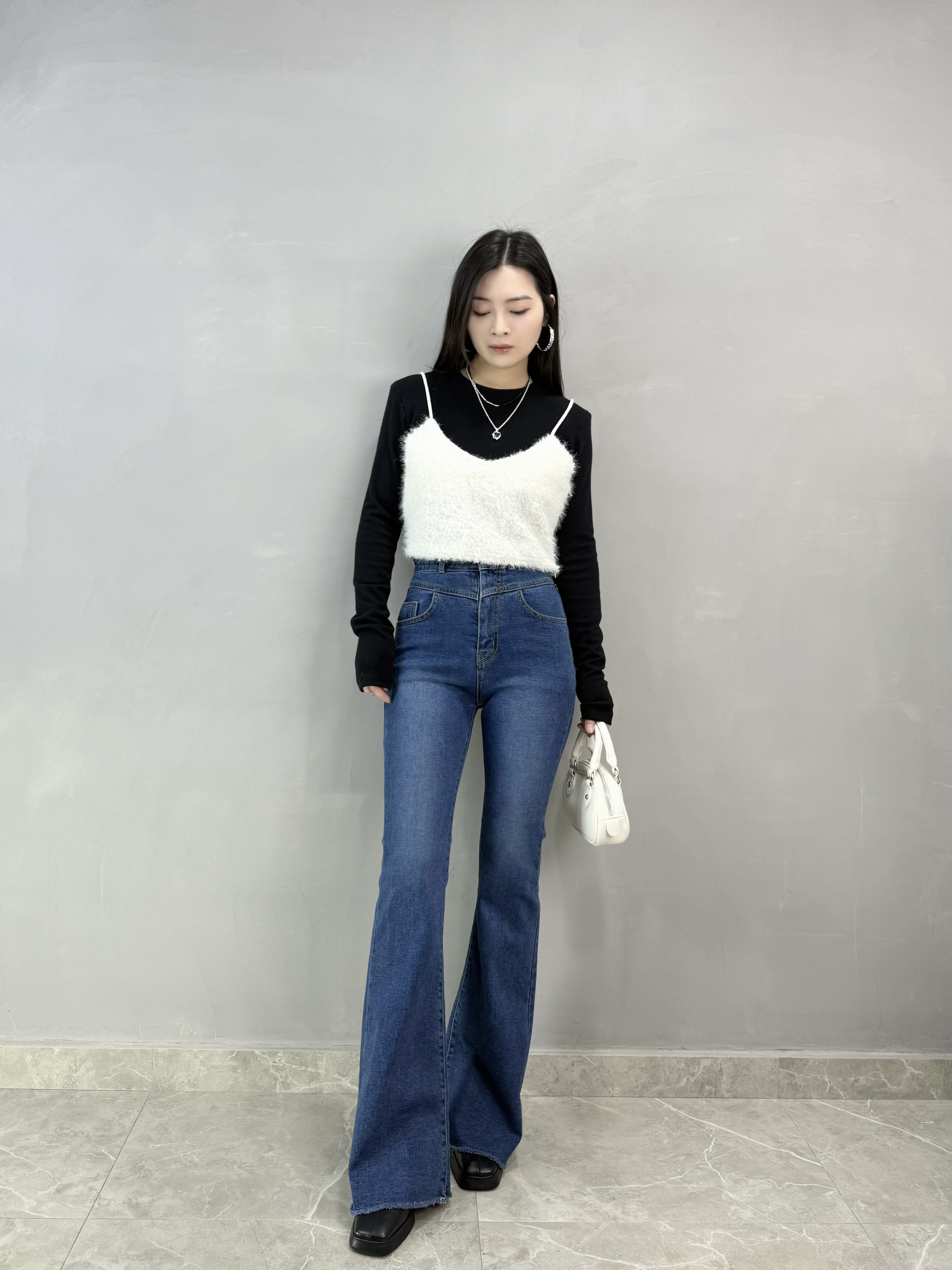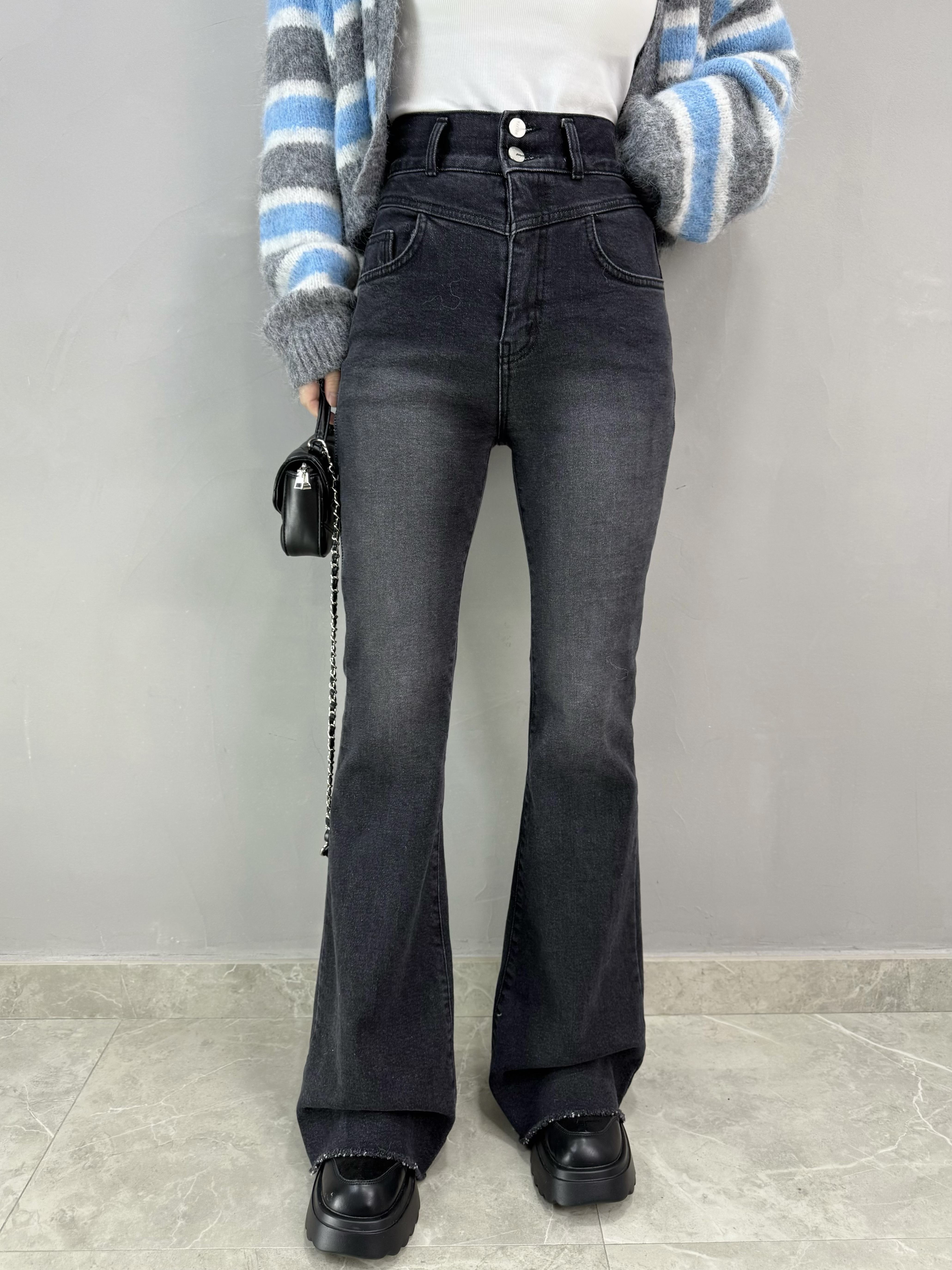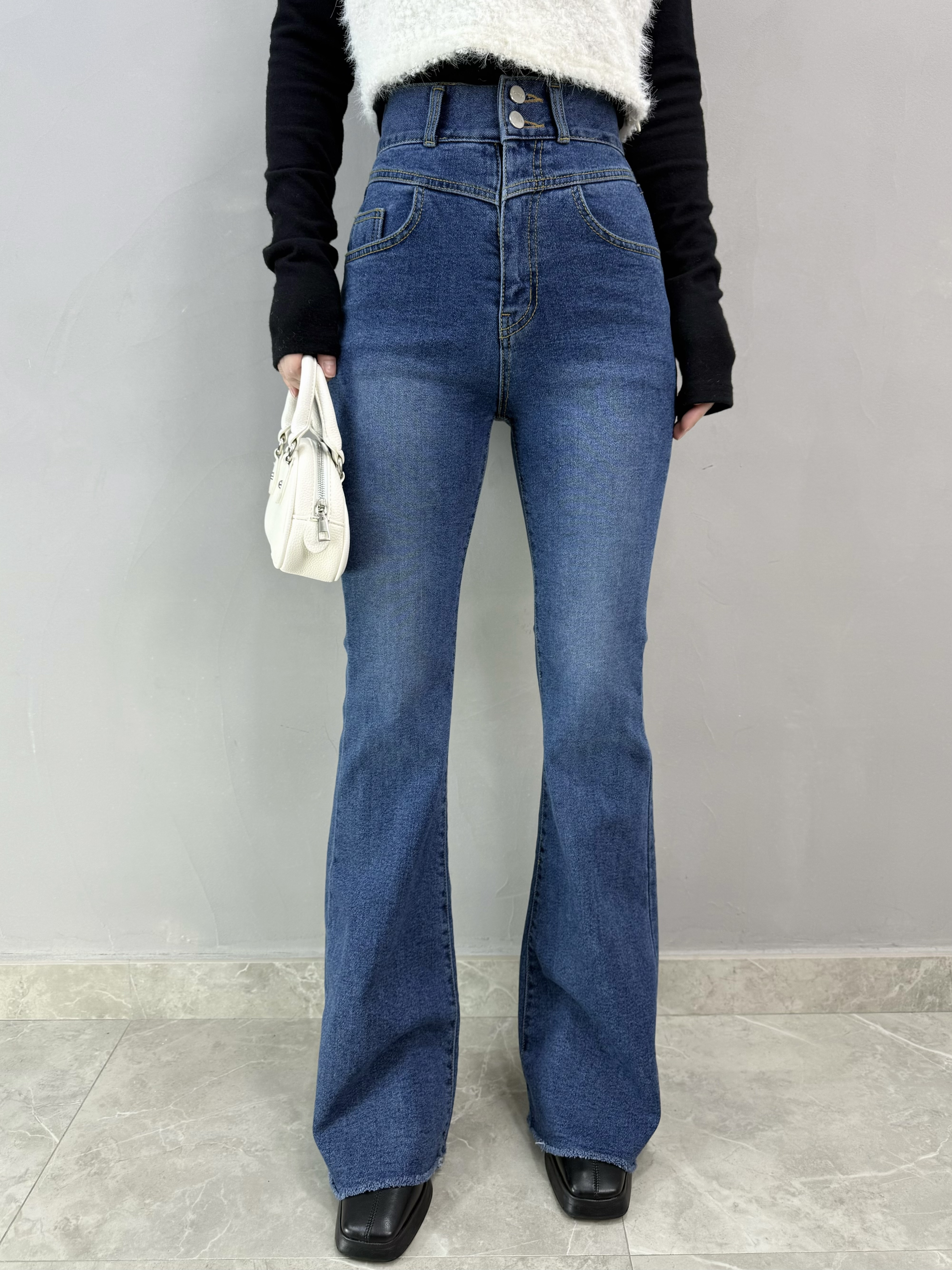 C65 雙扣高腰喇叭牛仔褲