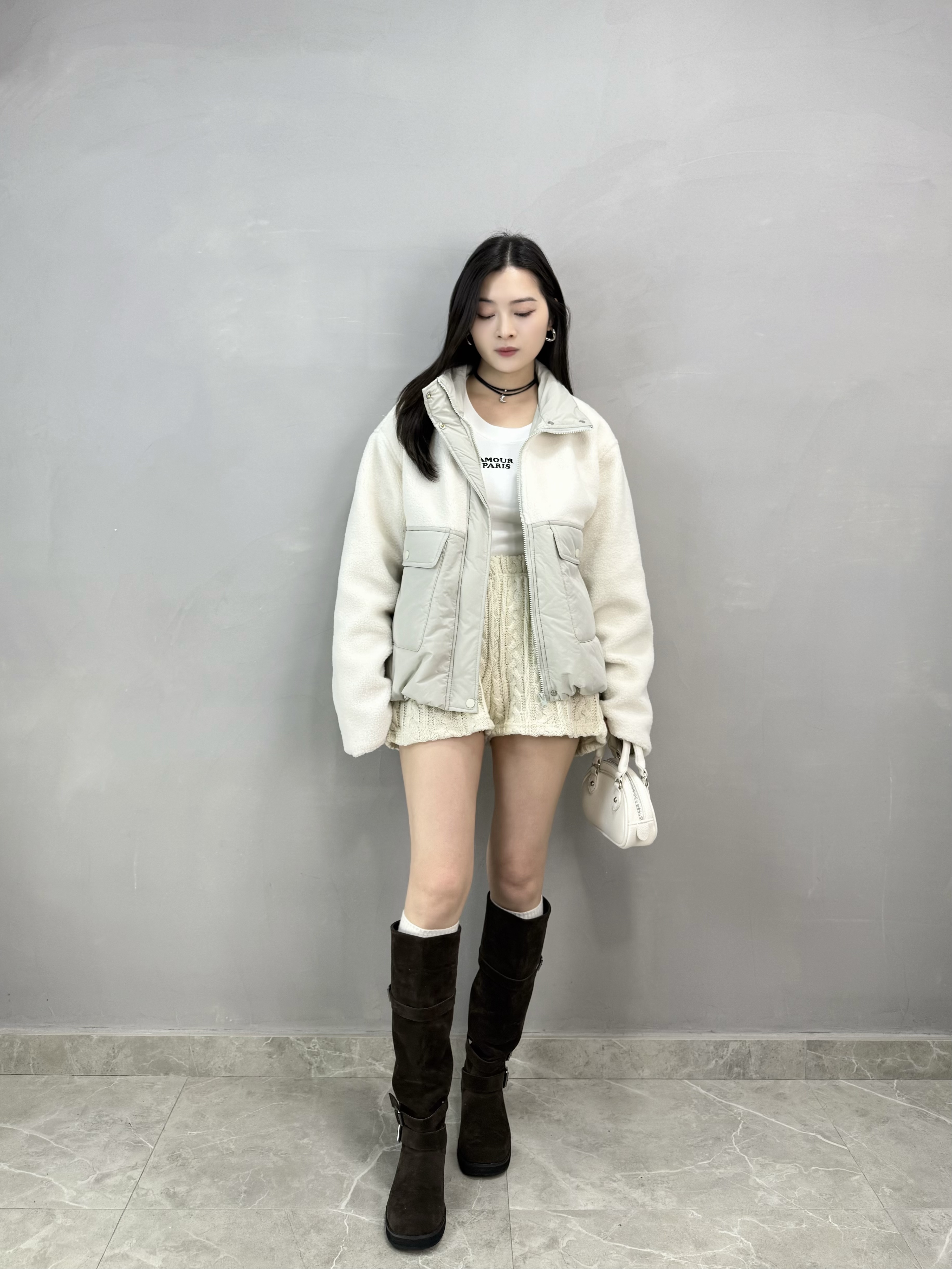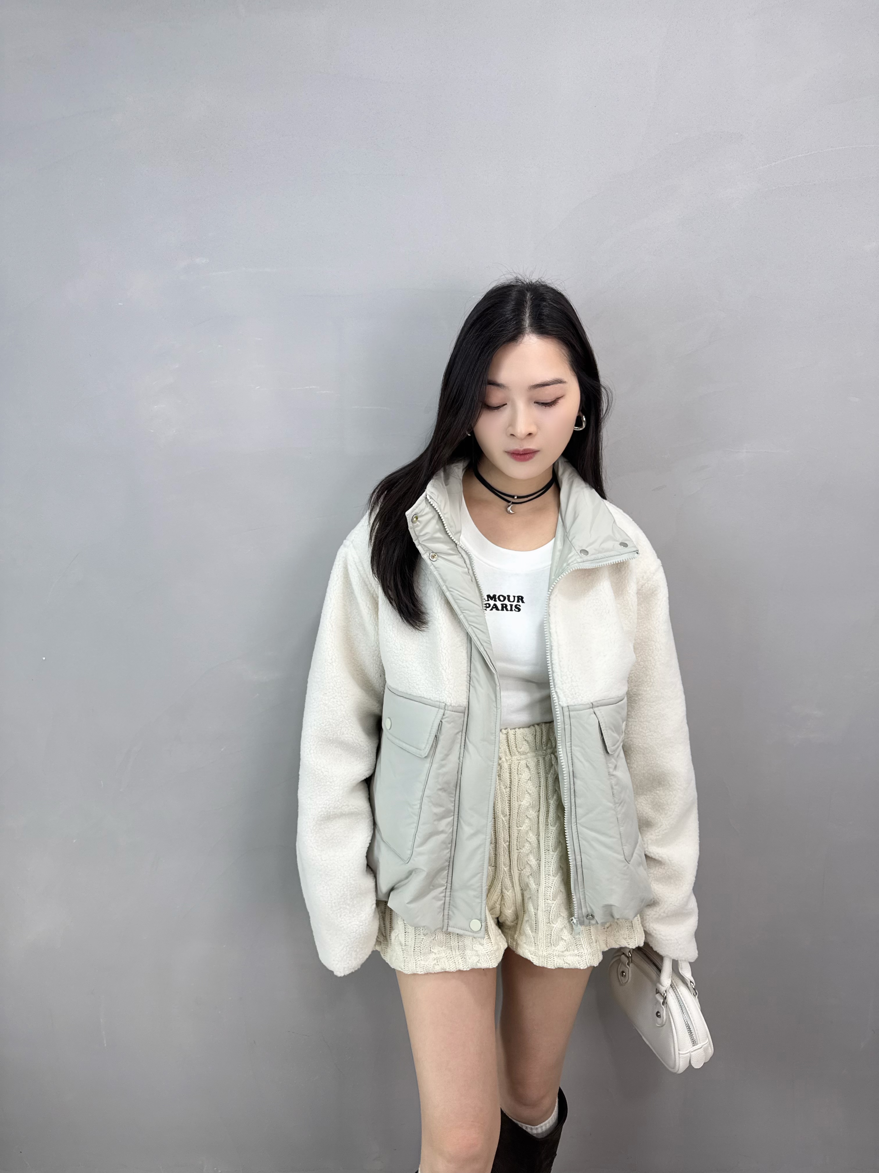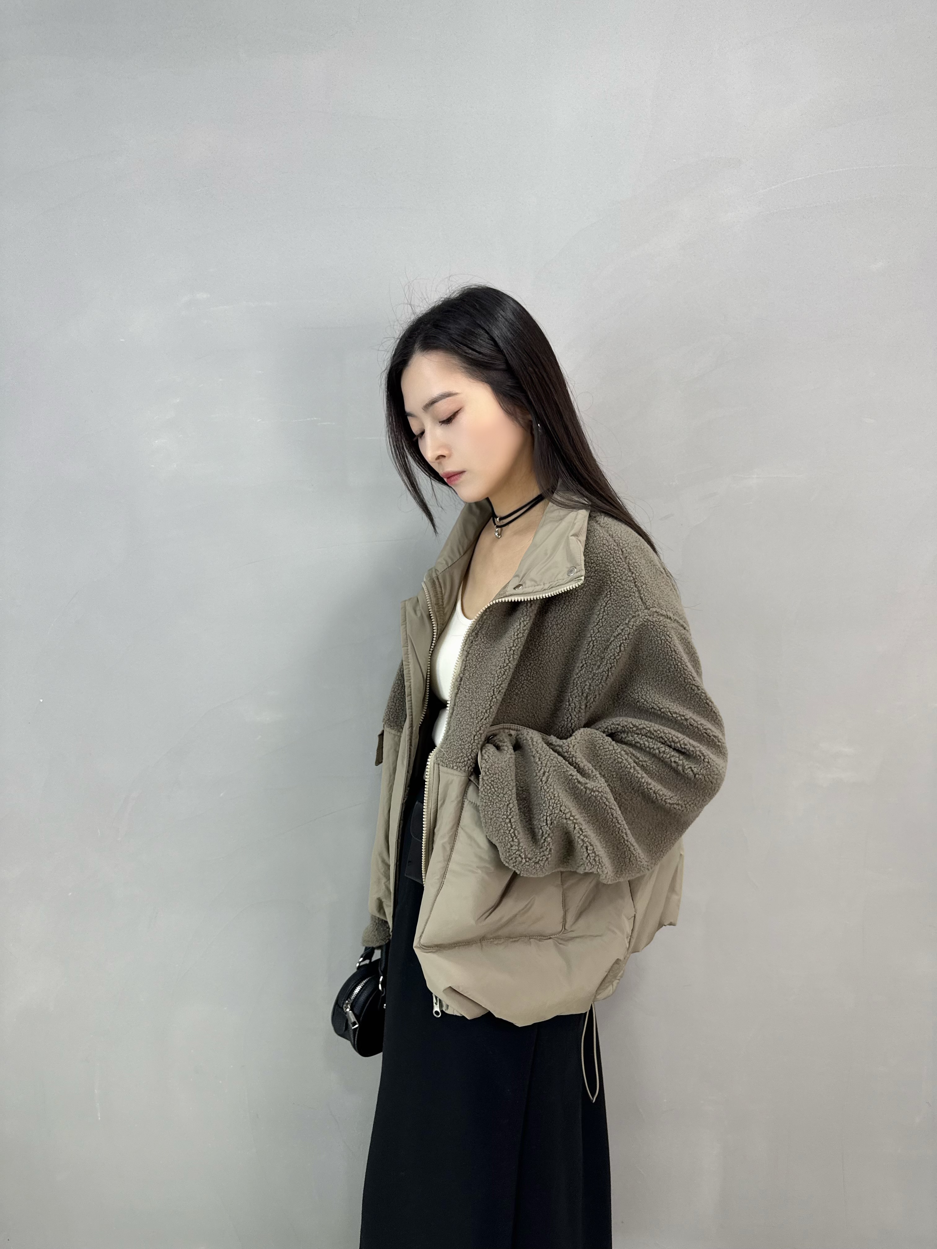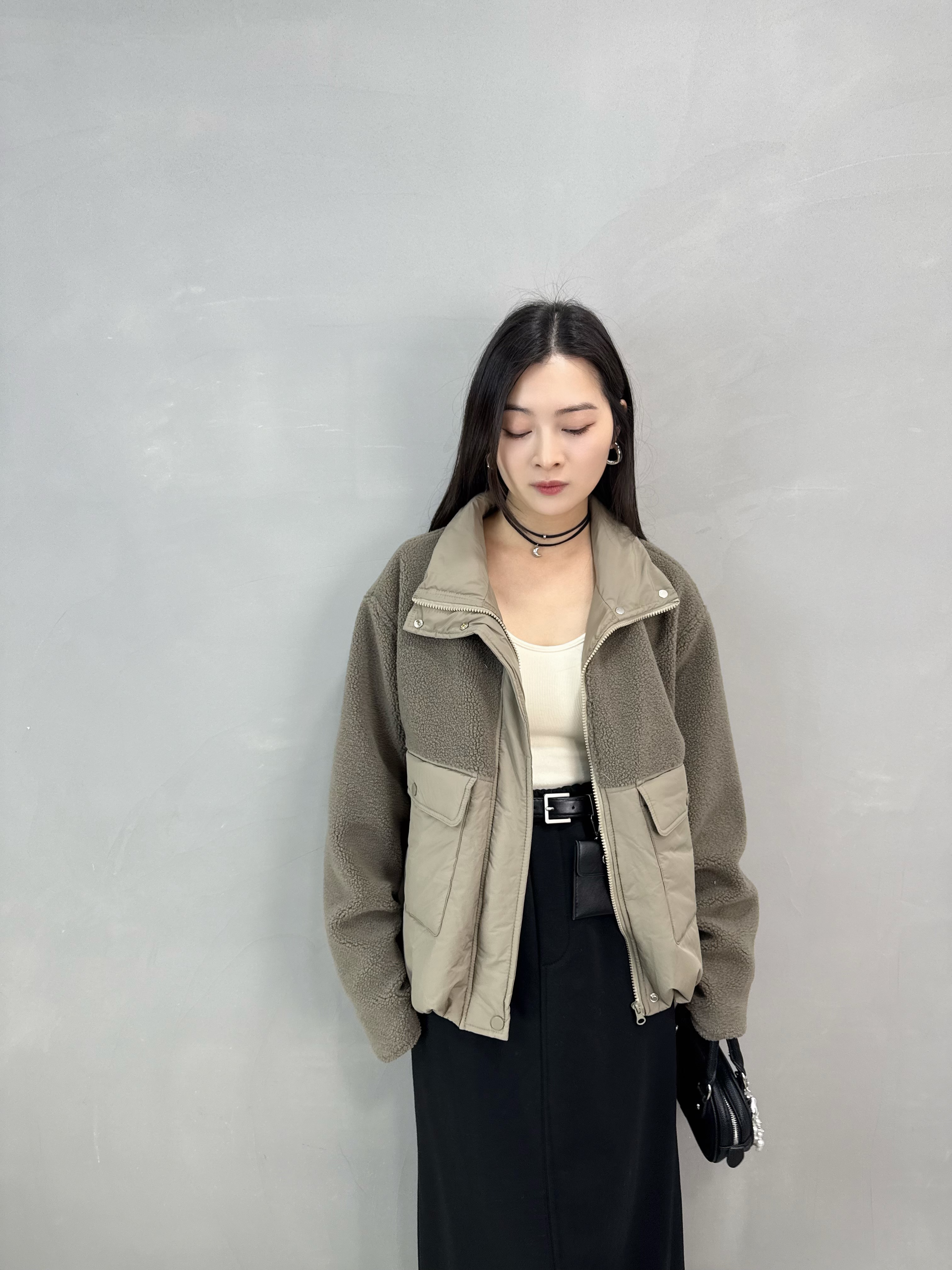 C78 羊羔毛拼夾棉褸