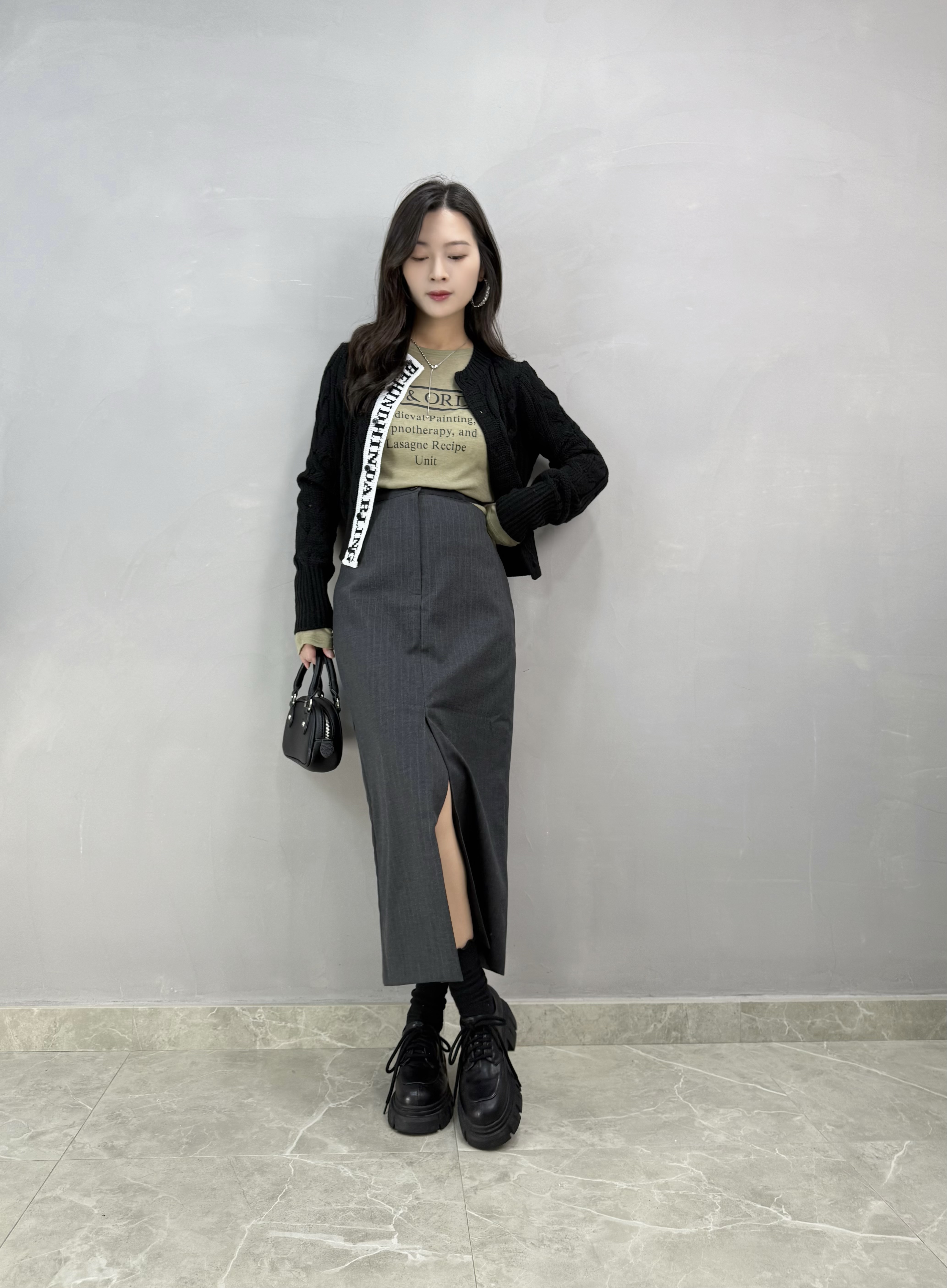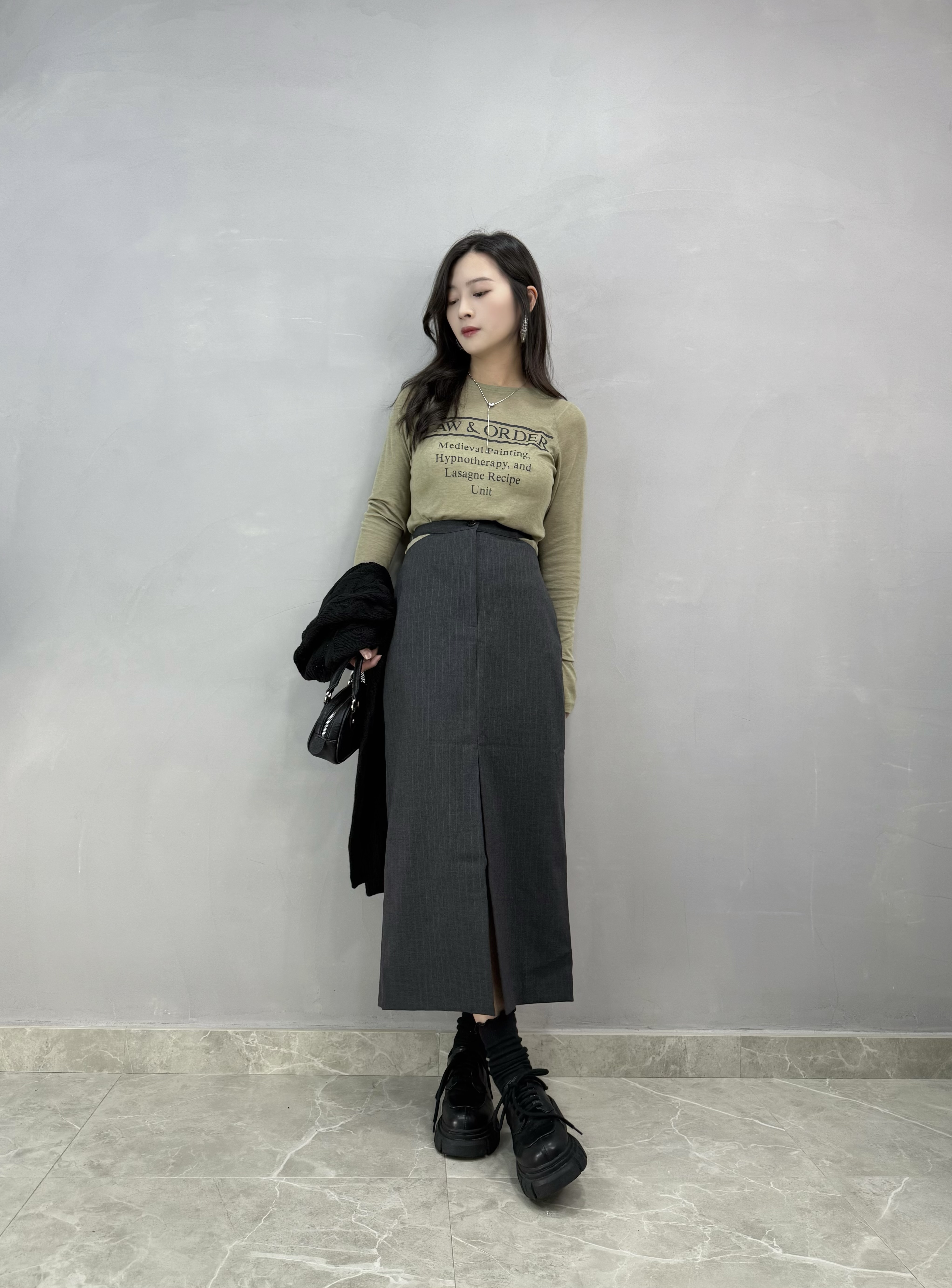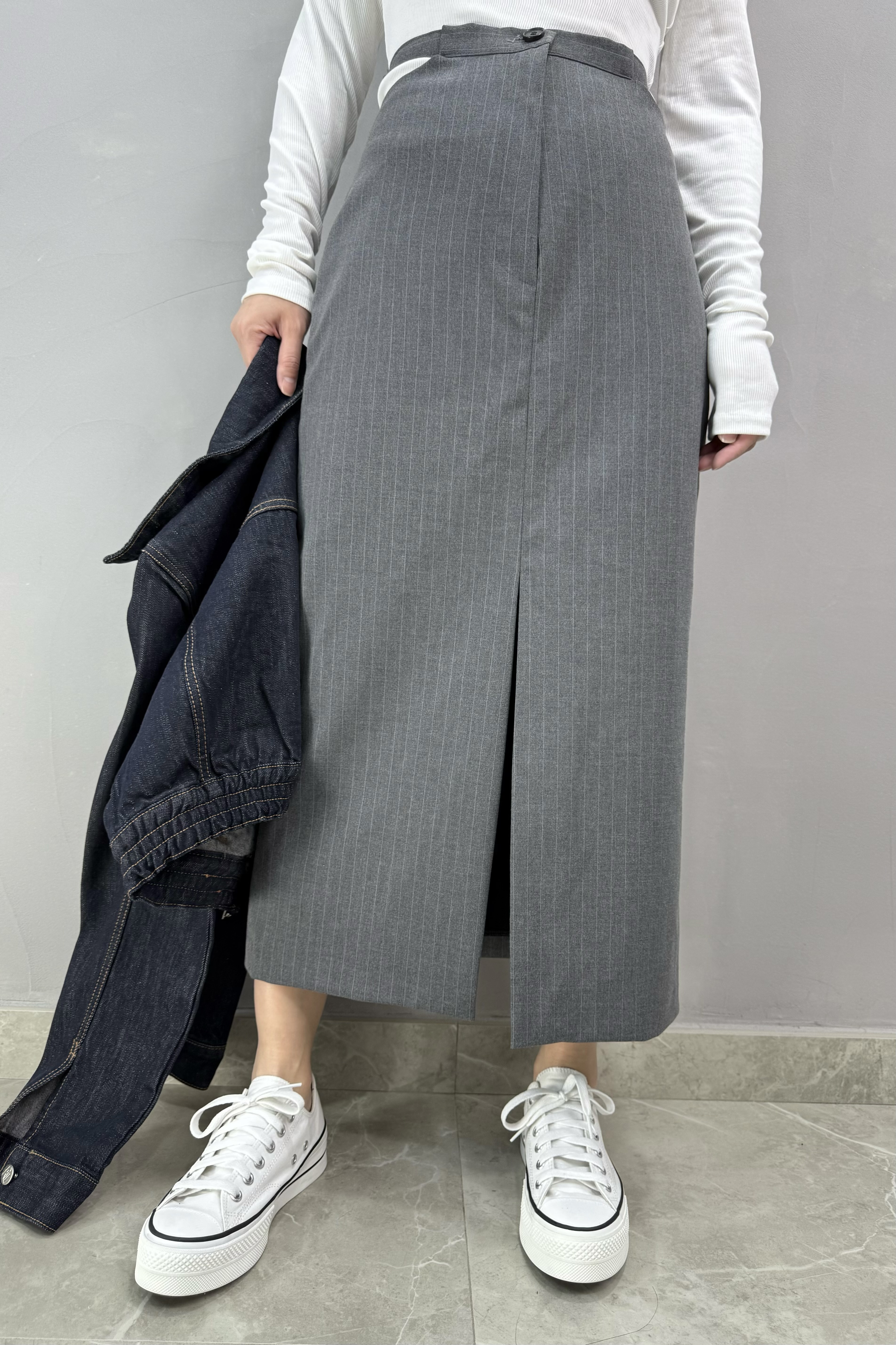 F03 剪腰條子長裙