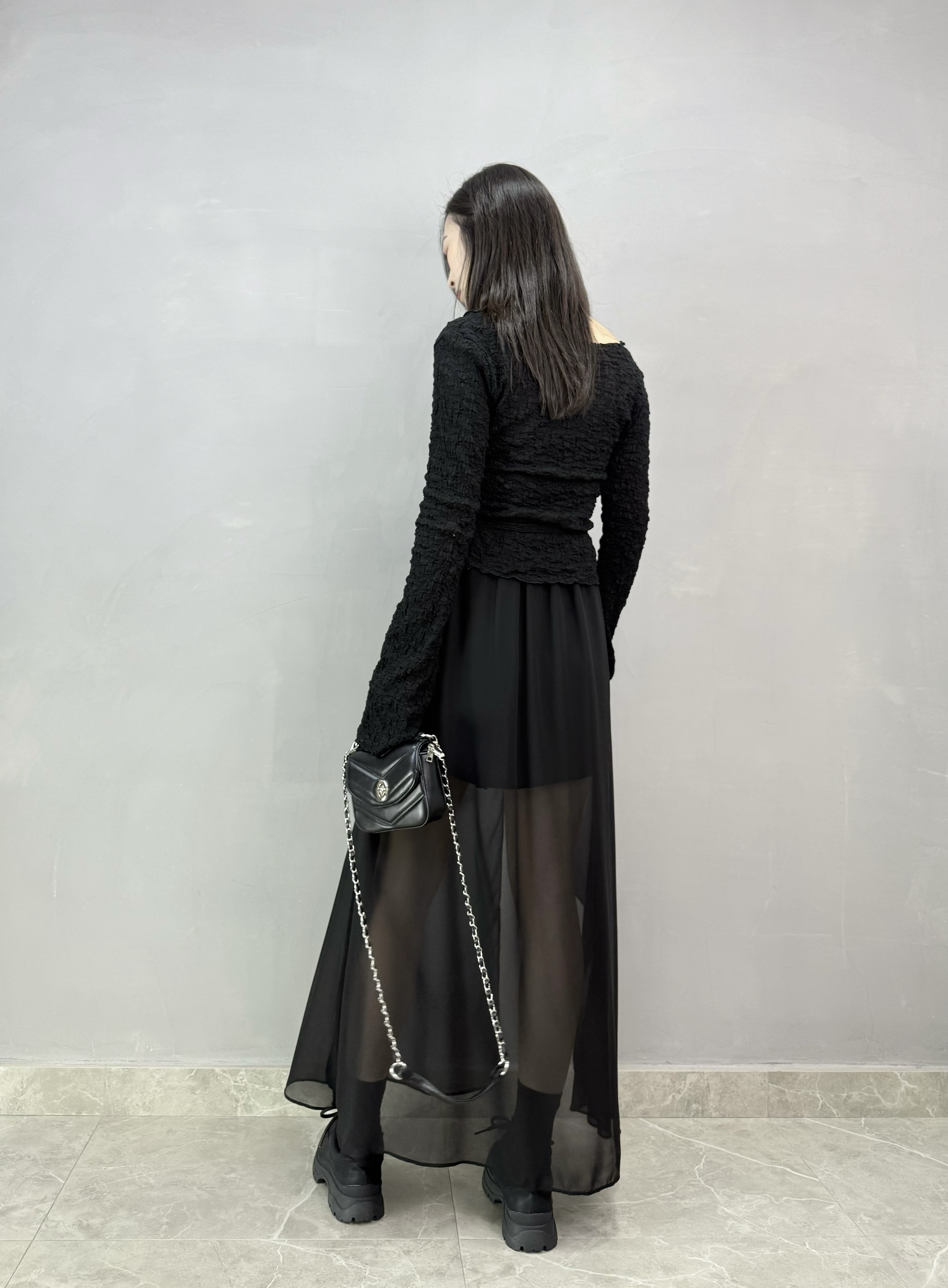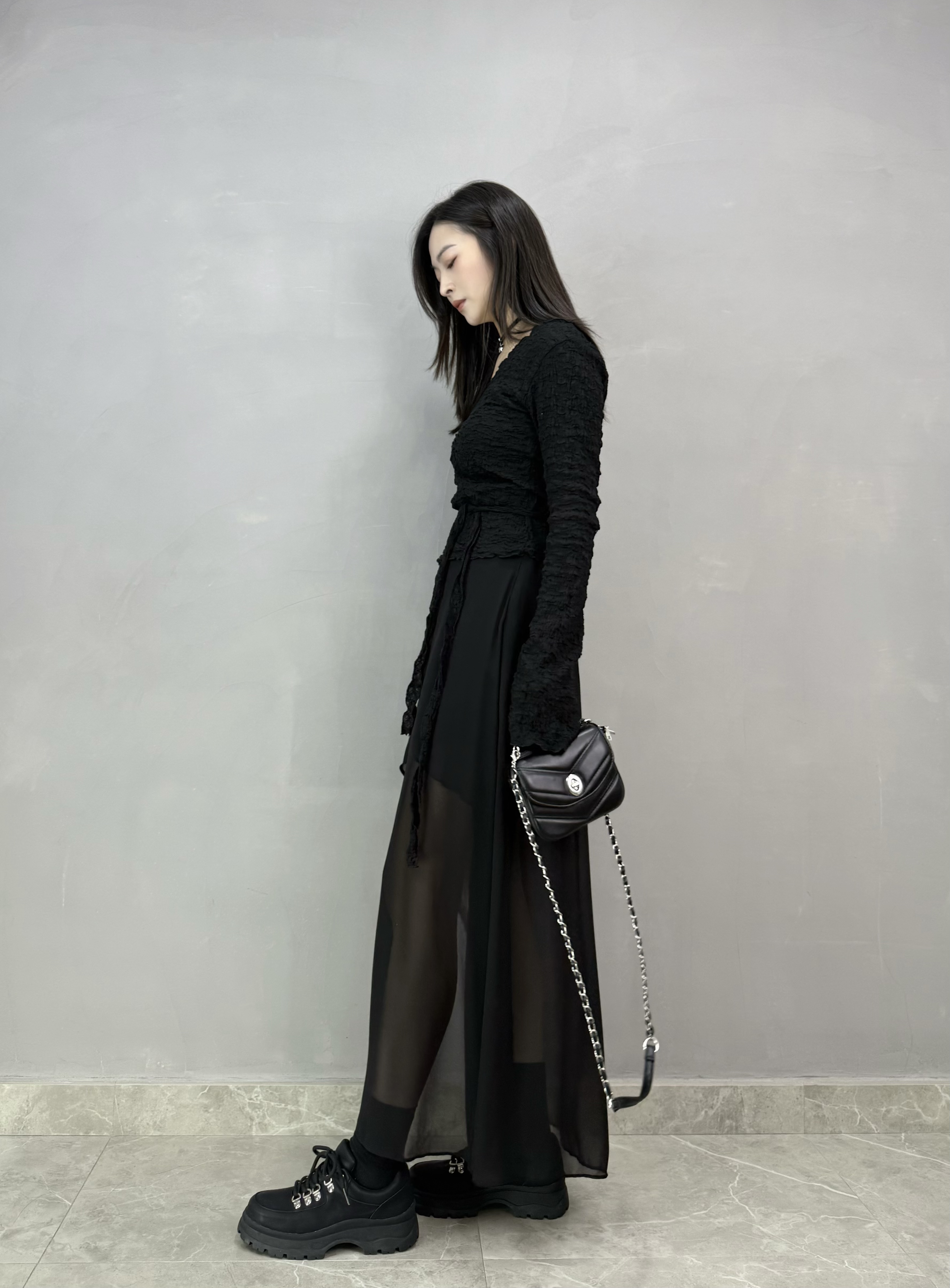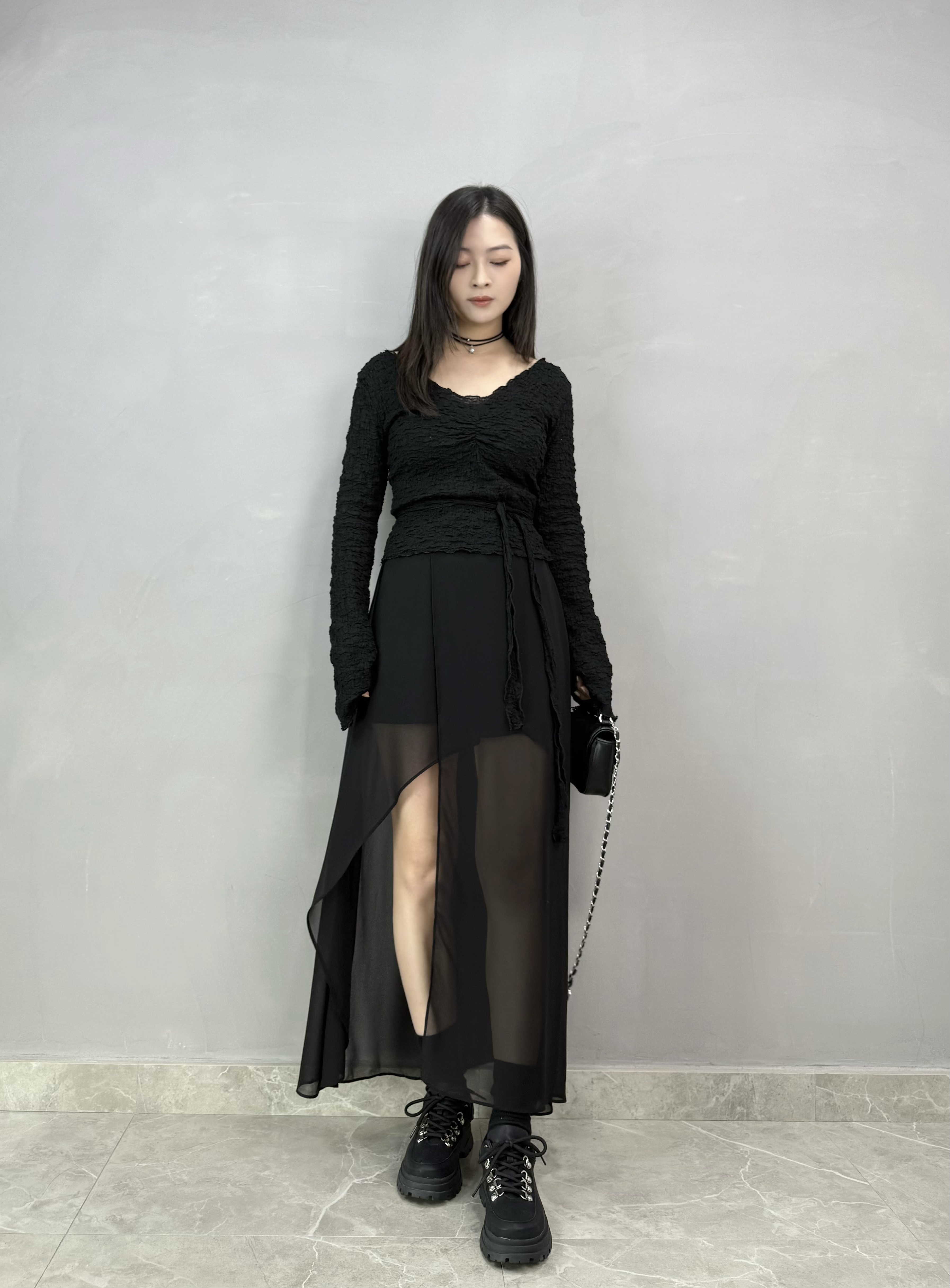 F31 開叉不規則雪紡裙