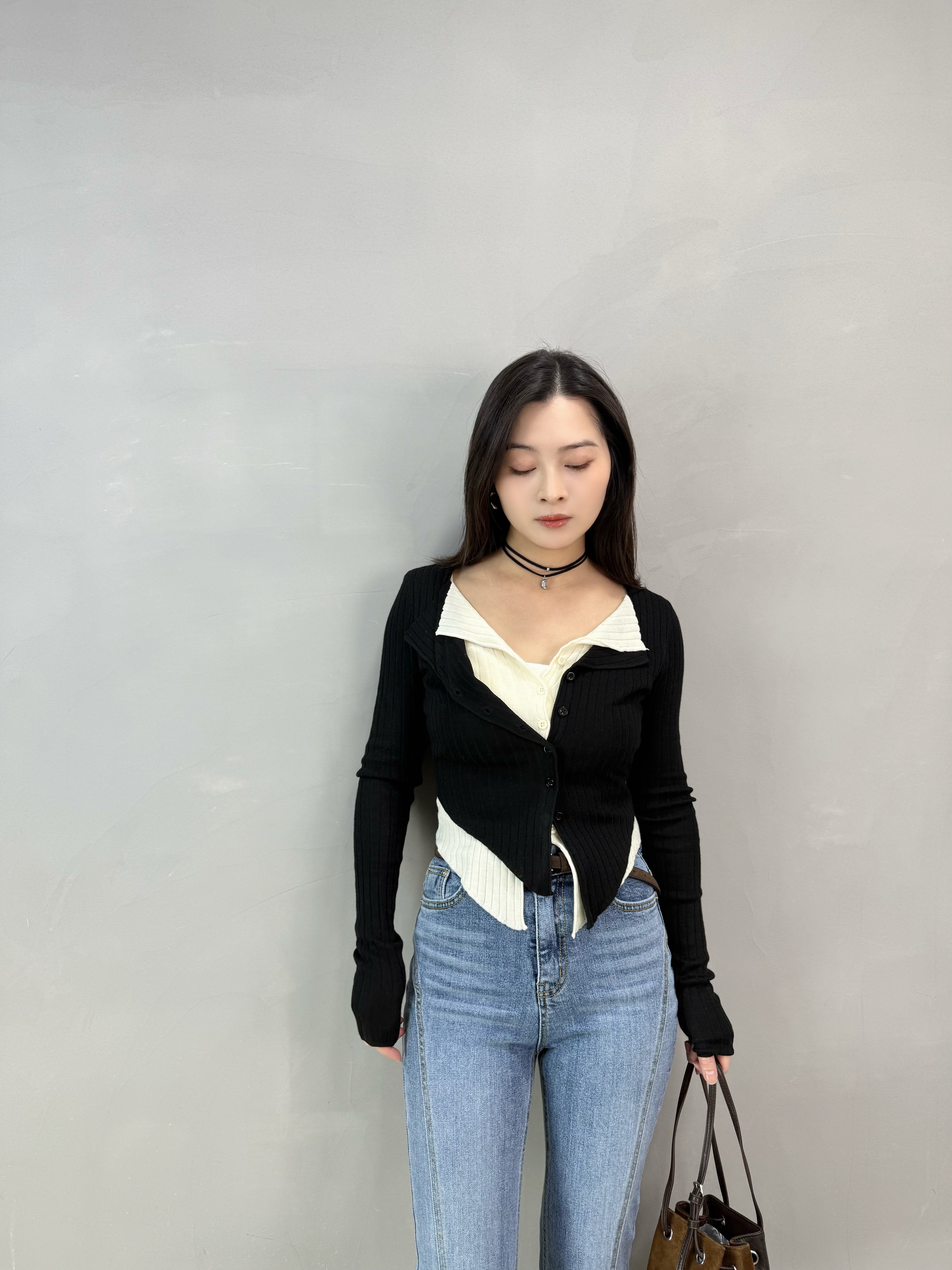 S30 撞色假2件扣鈕線Top