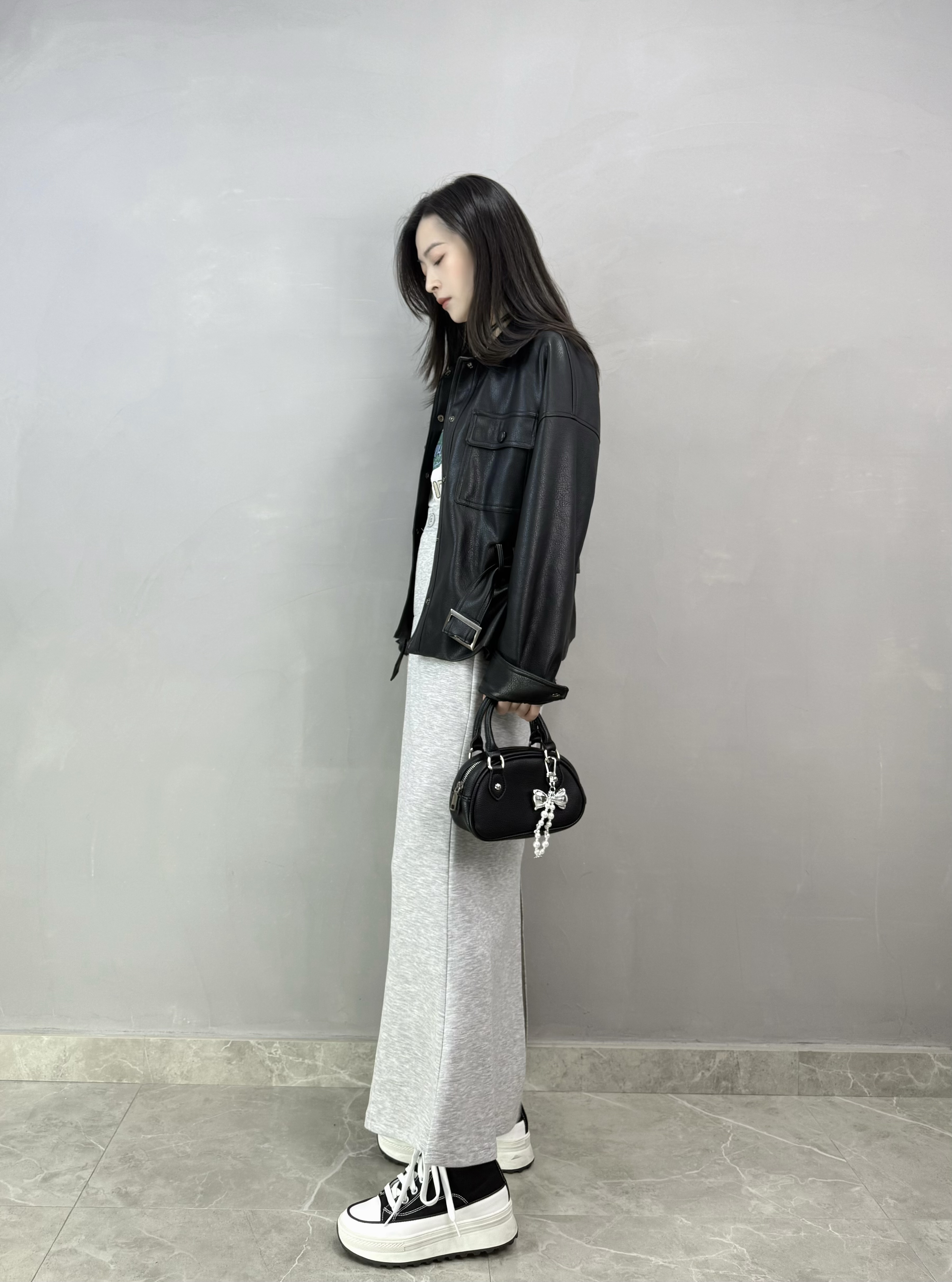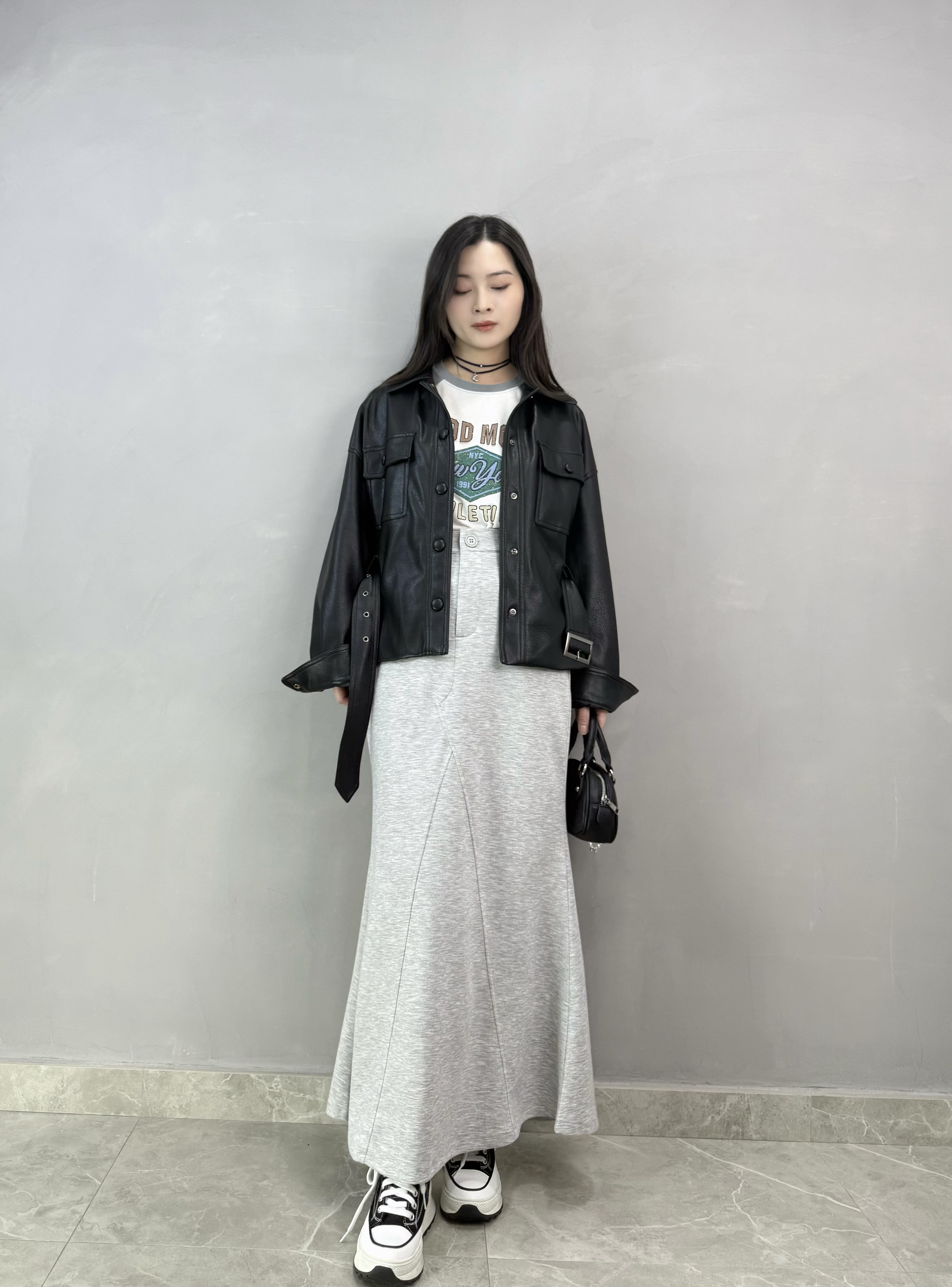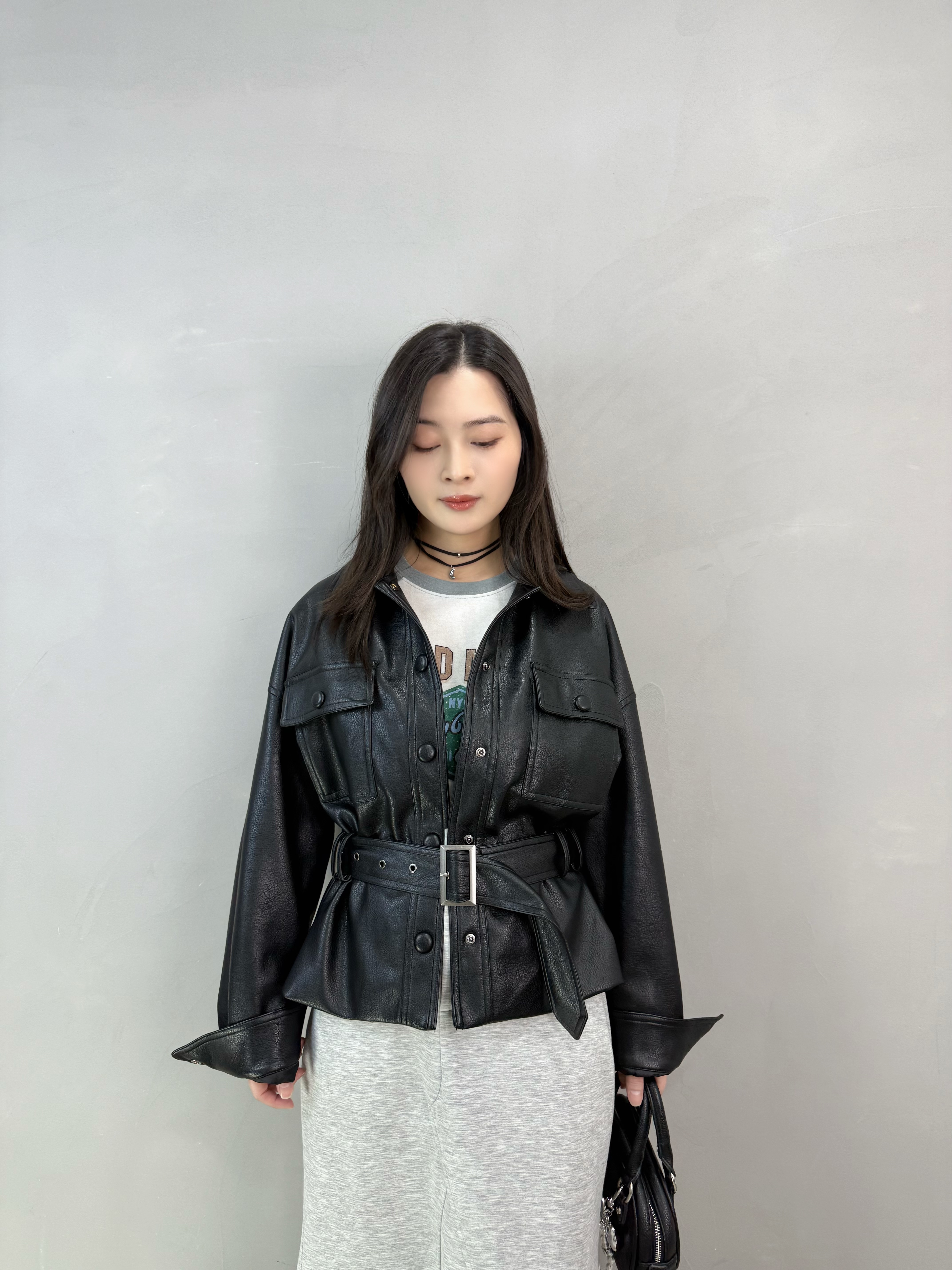 S36 連Belt仿皮外套