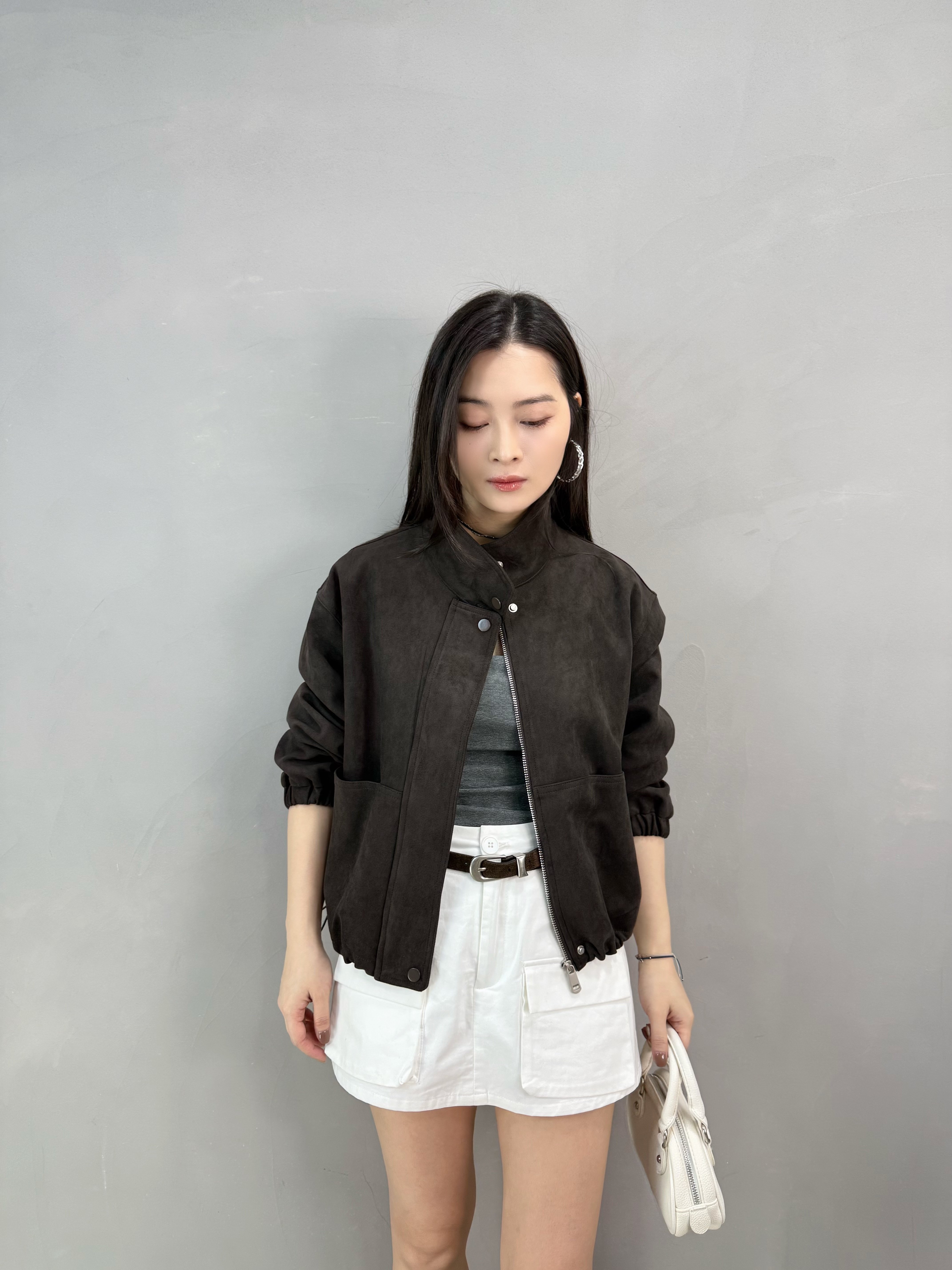 W49 束腳短麂皮外套