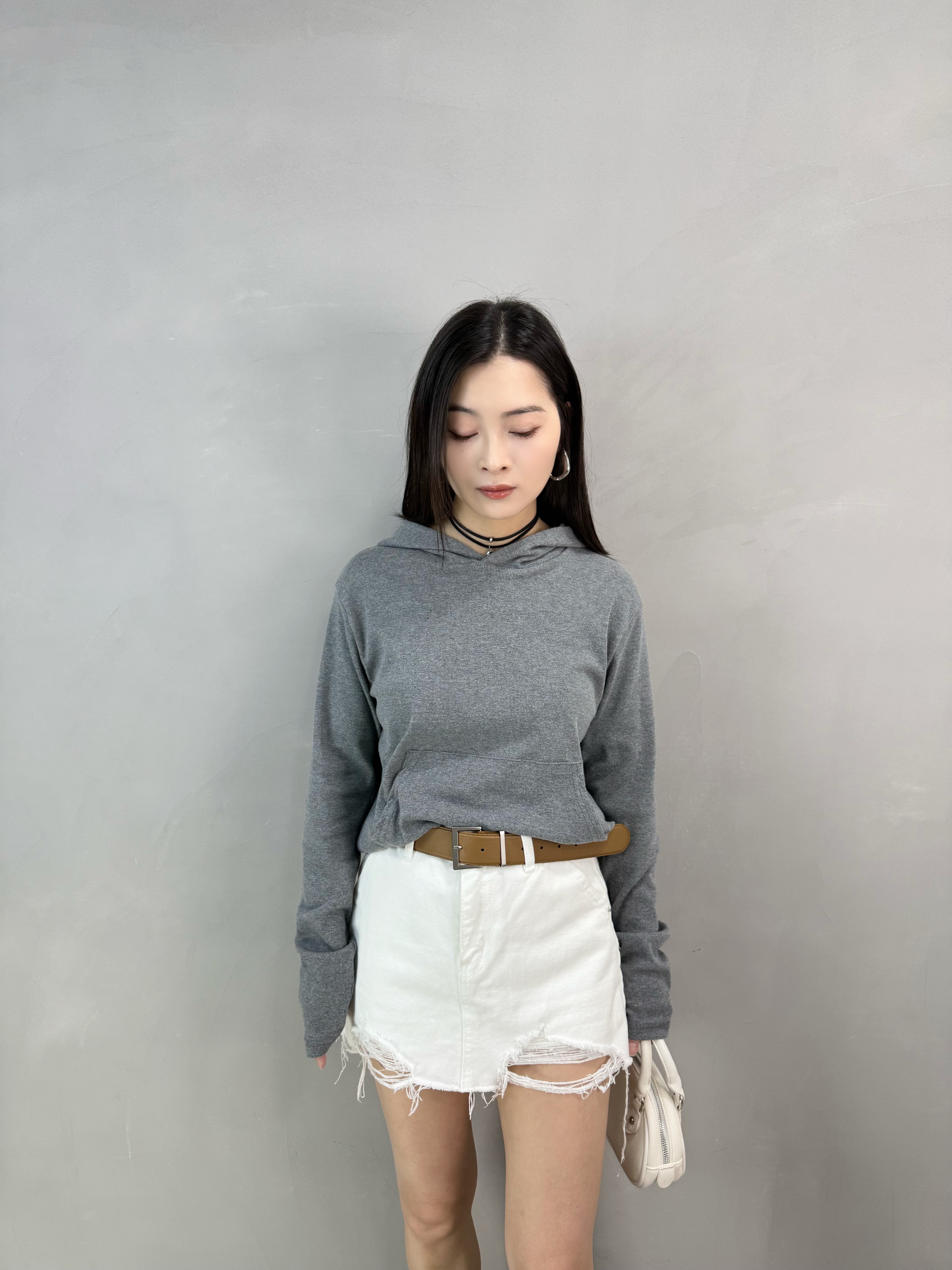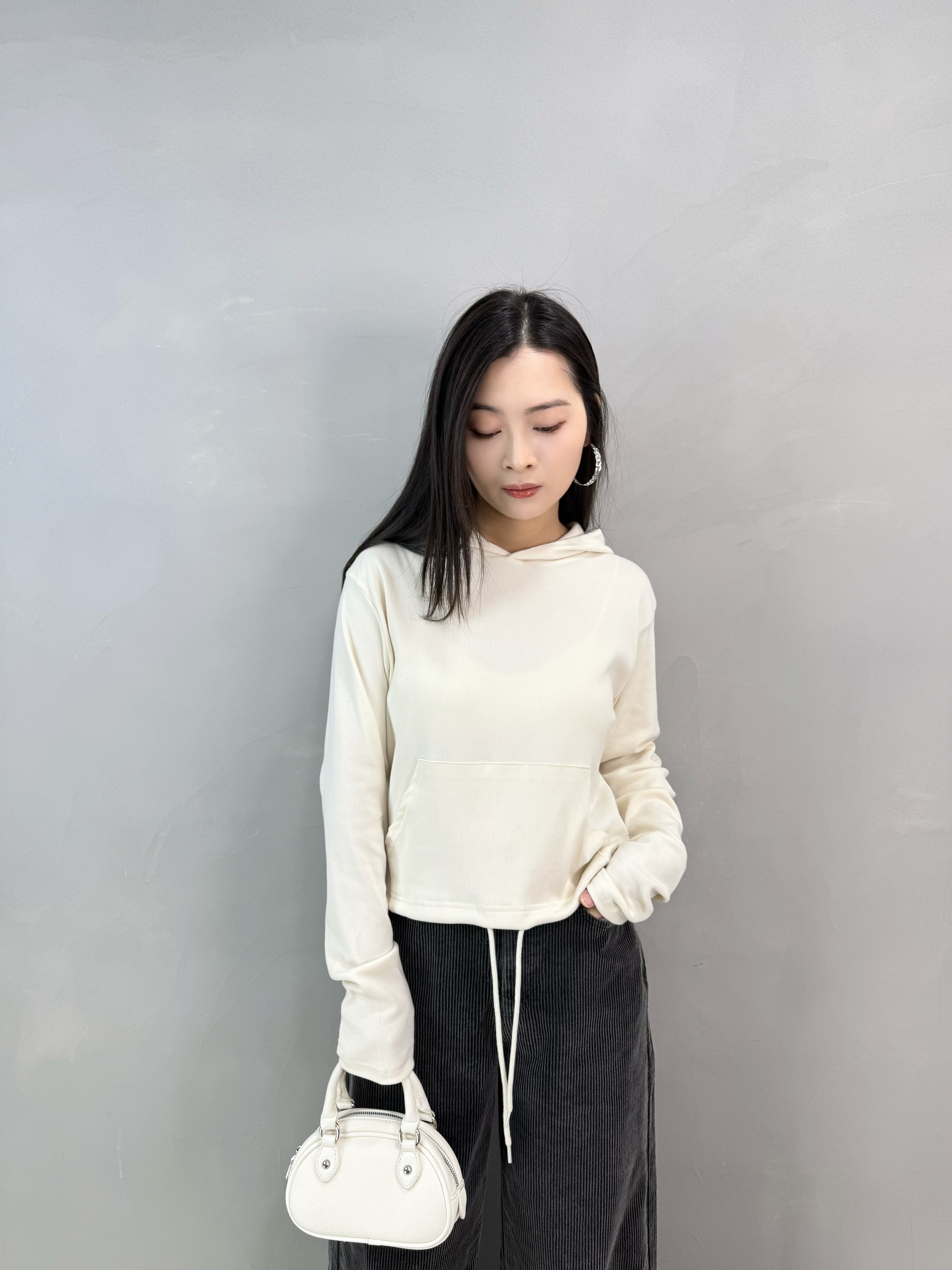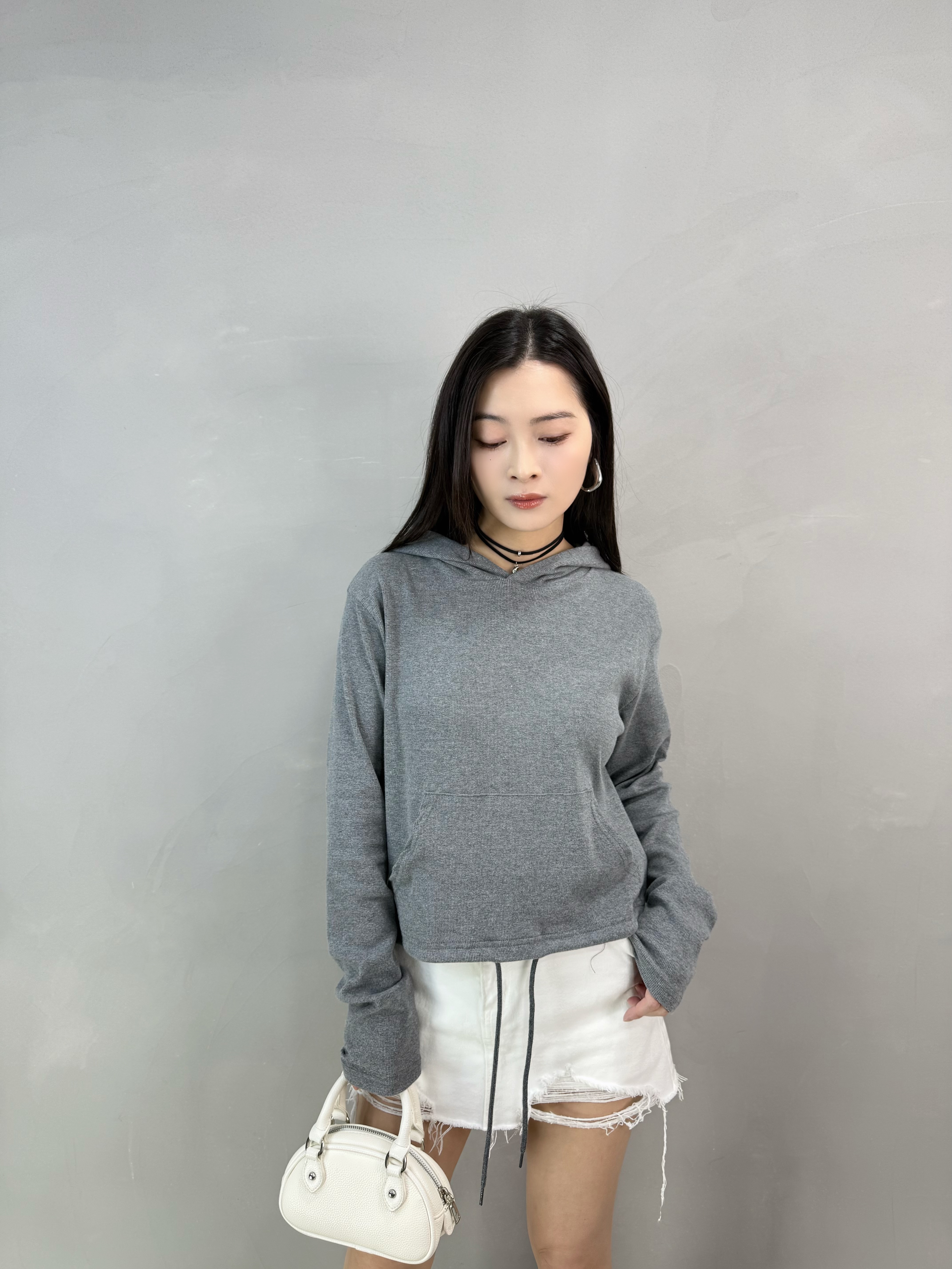 X16 暗紋有帽束腳tee