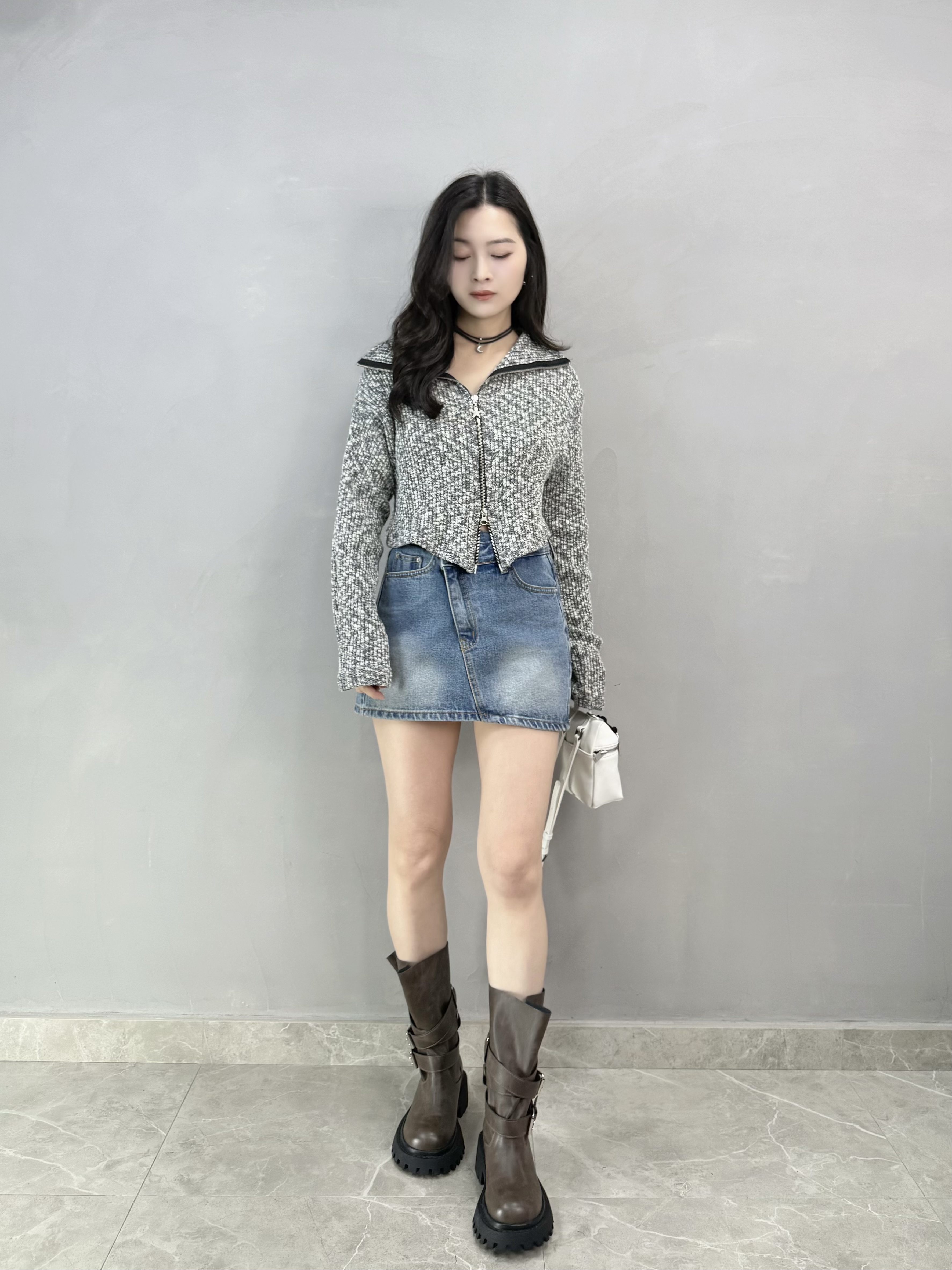 Z46 雙拉鍊星星扣短外套